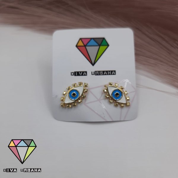 B1253 BRINCO FOL DOURADO CRAV ZIRC BRANCA PEDRA BRANCA A