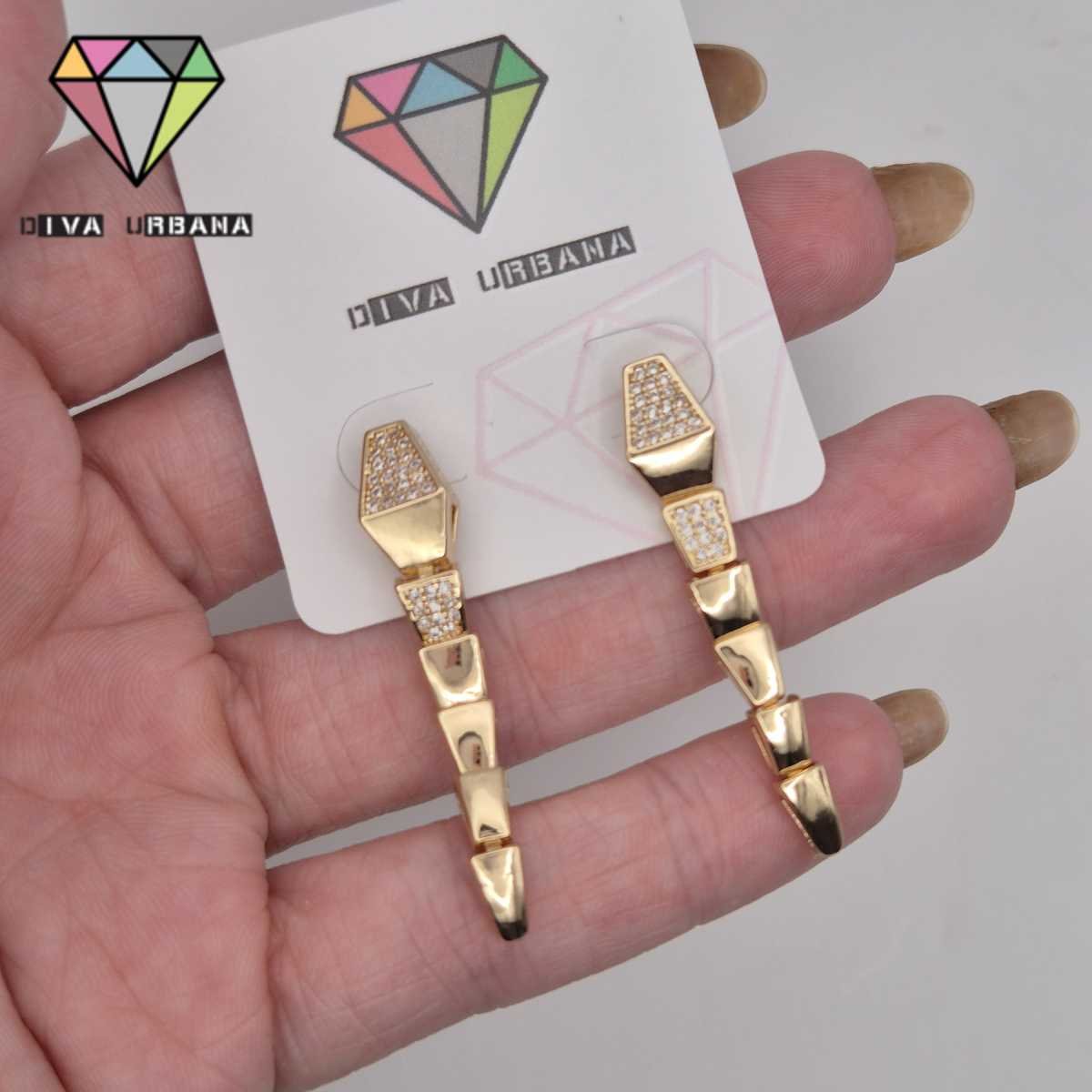 B8696 BRINCO PINO COBRA INSP ALTA JOALHERIA CRAV ZIRC CRISTAL