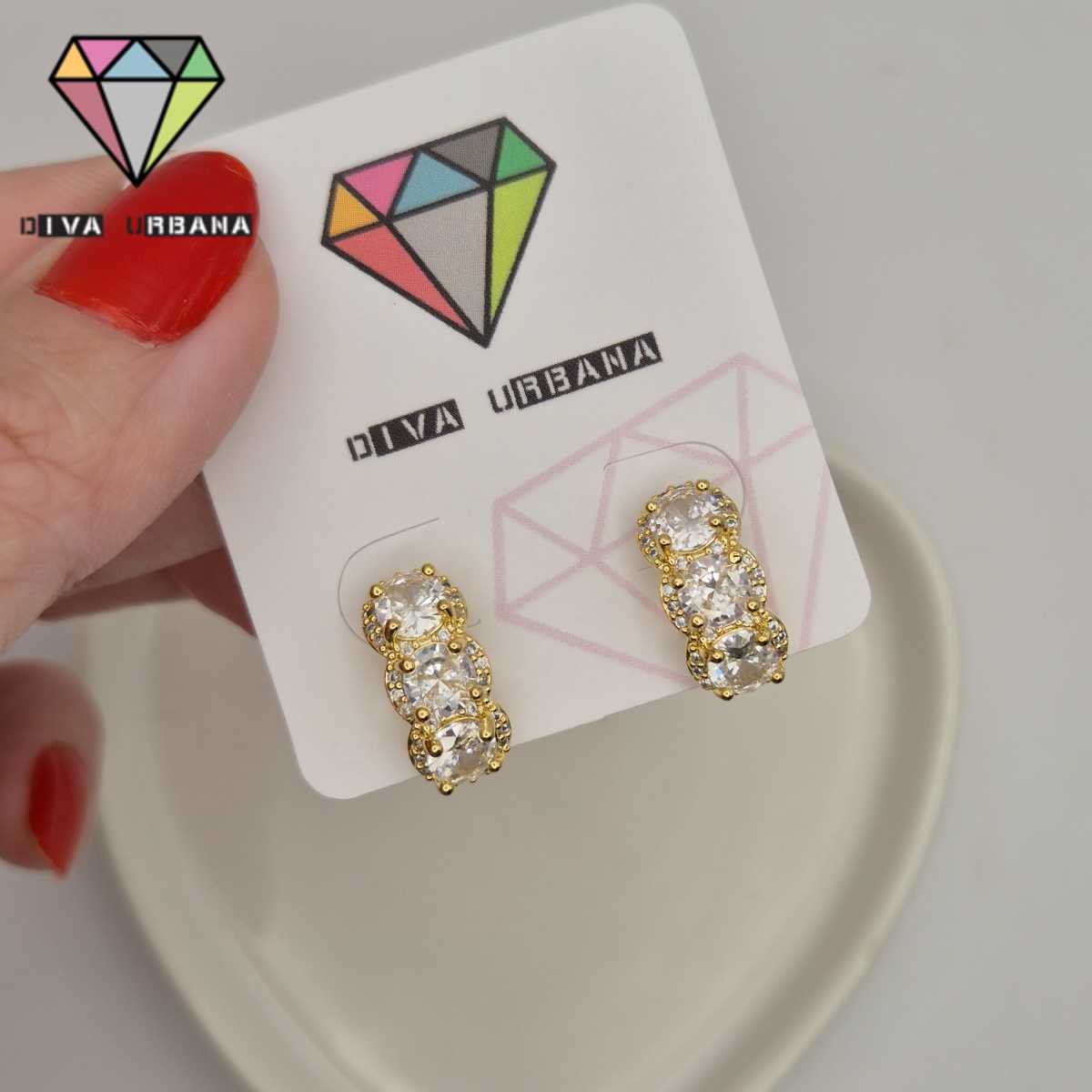 B8395 BRINCO PINO TRES ZIRCONIAS VERTICAIS CRAV ZIRC CRISTAL