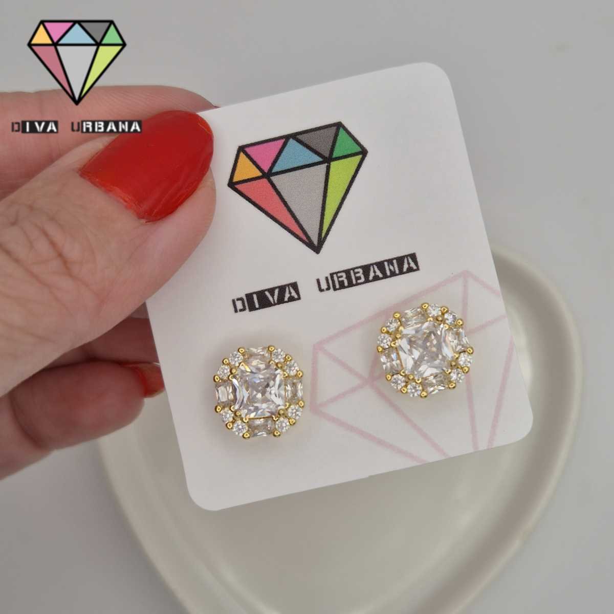 B8404 BRINCO PINO ZIRC QUADRADA CRISTAL NAVETES CRISTAIS