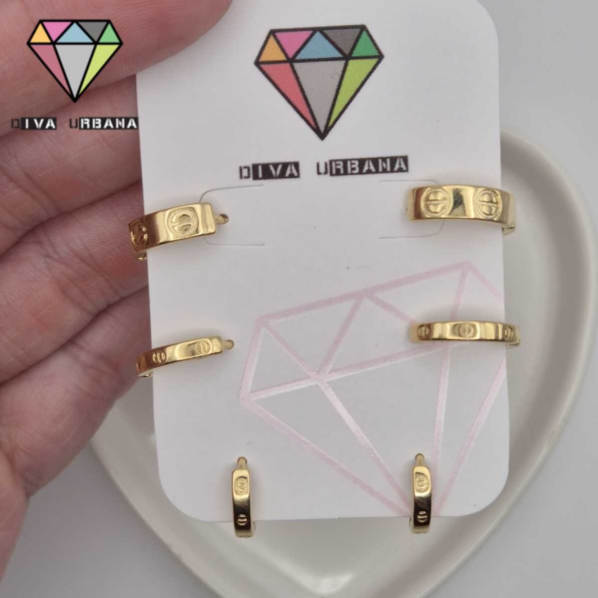B8425 BRINCO TRIO ARGOLAS CLICK DOURADA INSP CARTIER