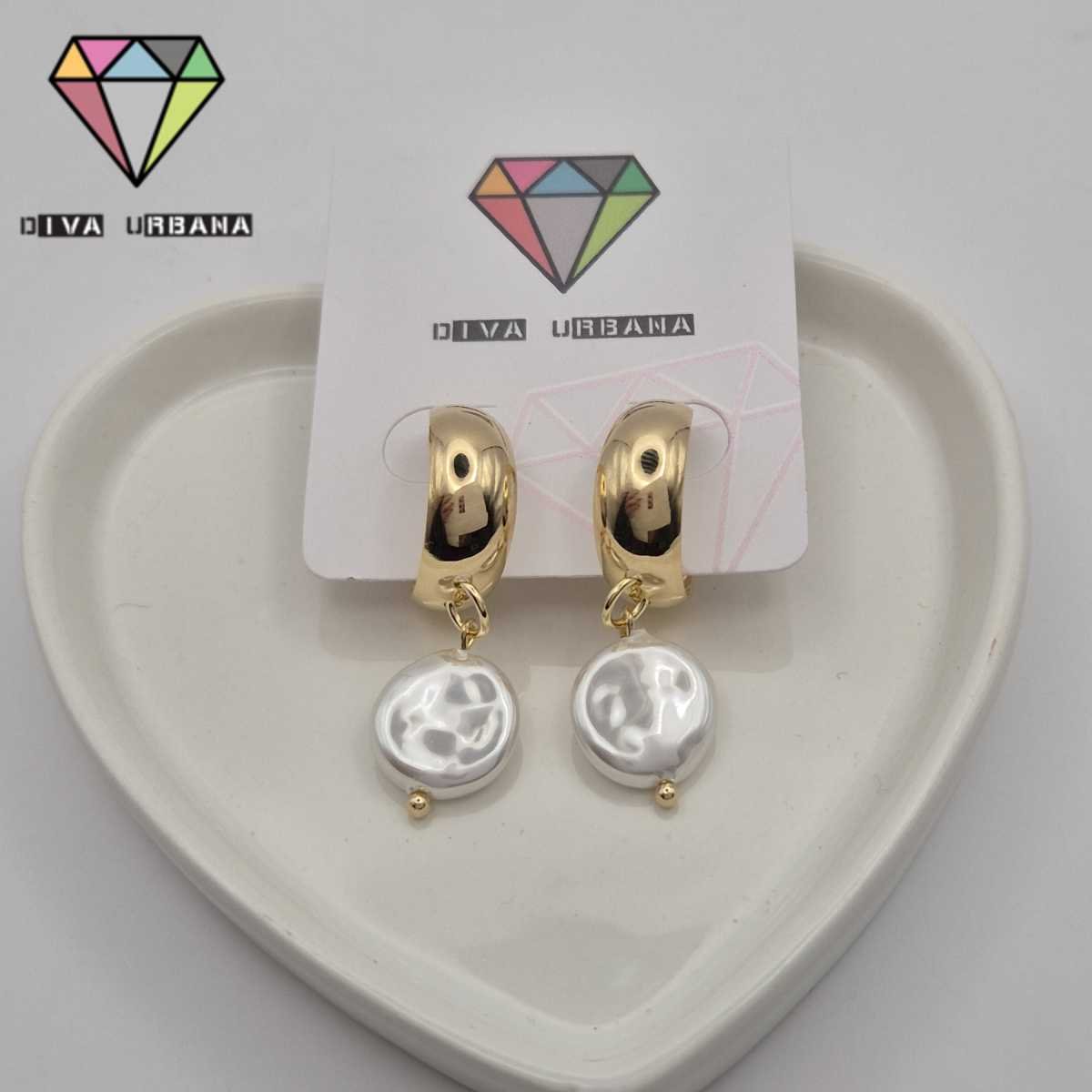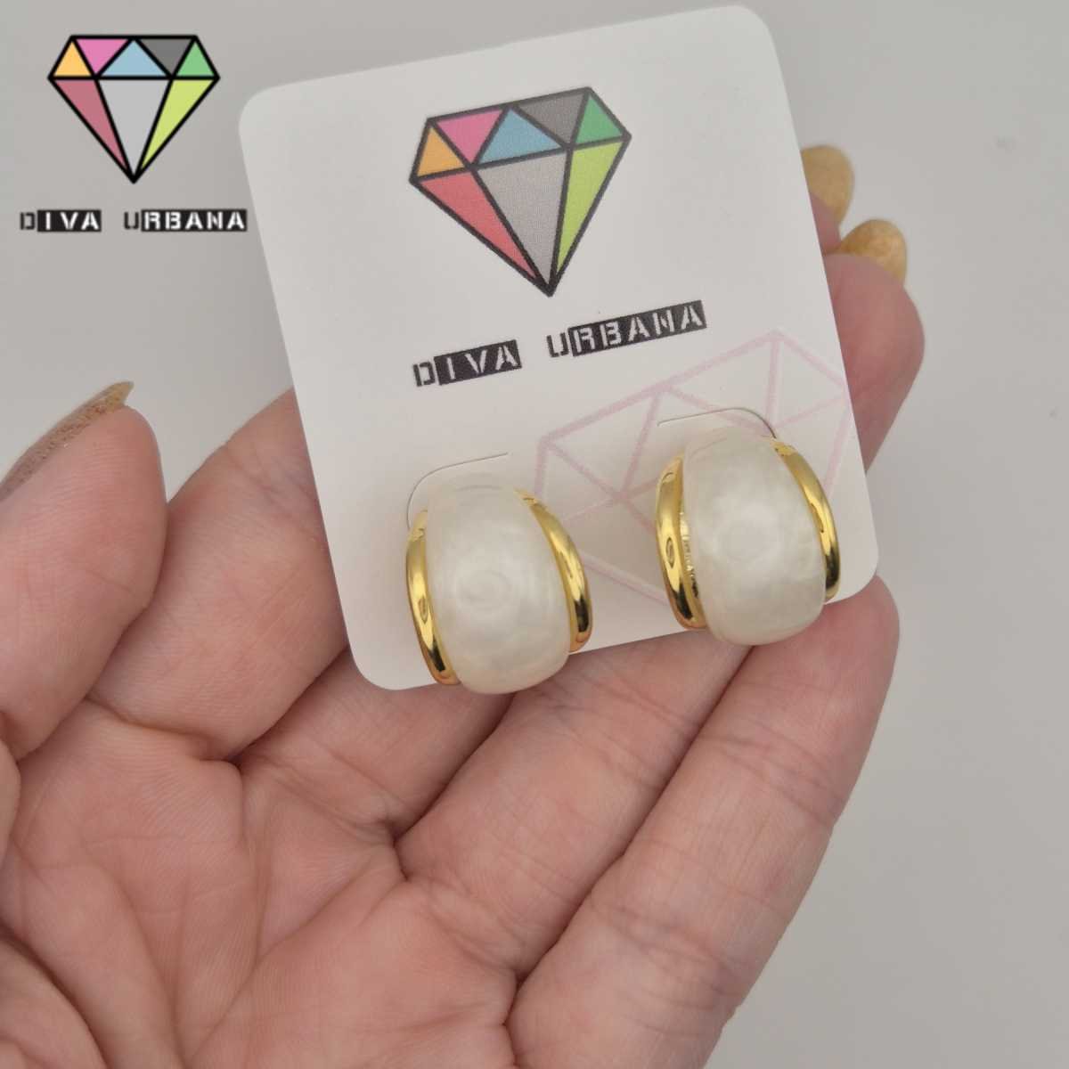 B8430 BRINCO ARGOLA PINO DOURADA PEROLA PASTILHA