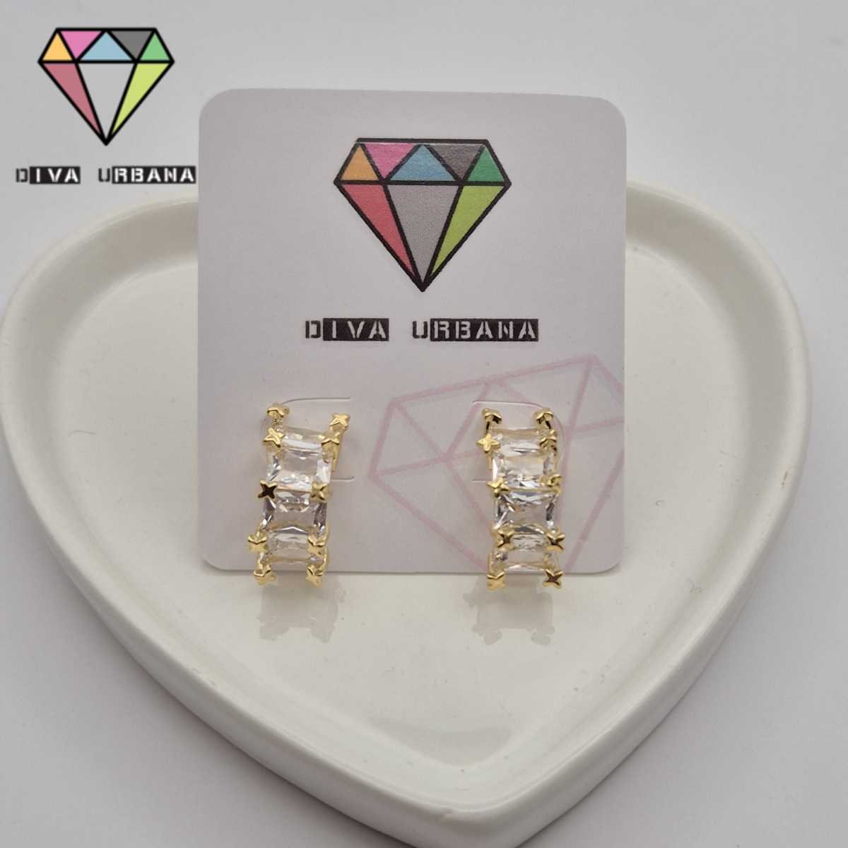 B8512 BRINCO PINO MEIA ARGOLA ZIRC QUADRADAS CRISTAIS