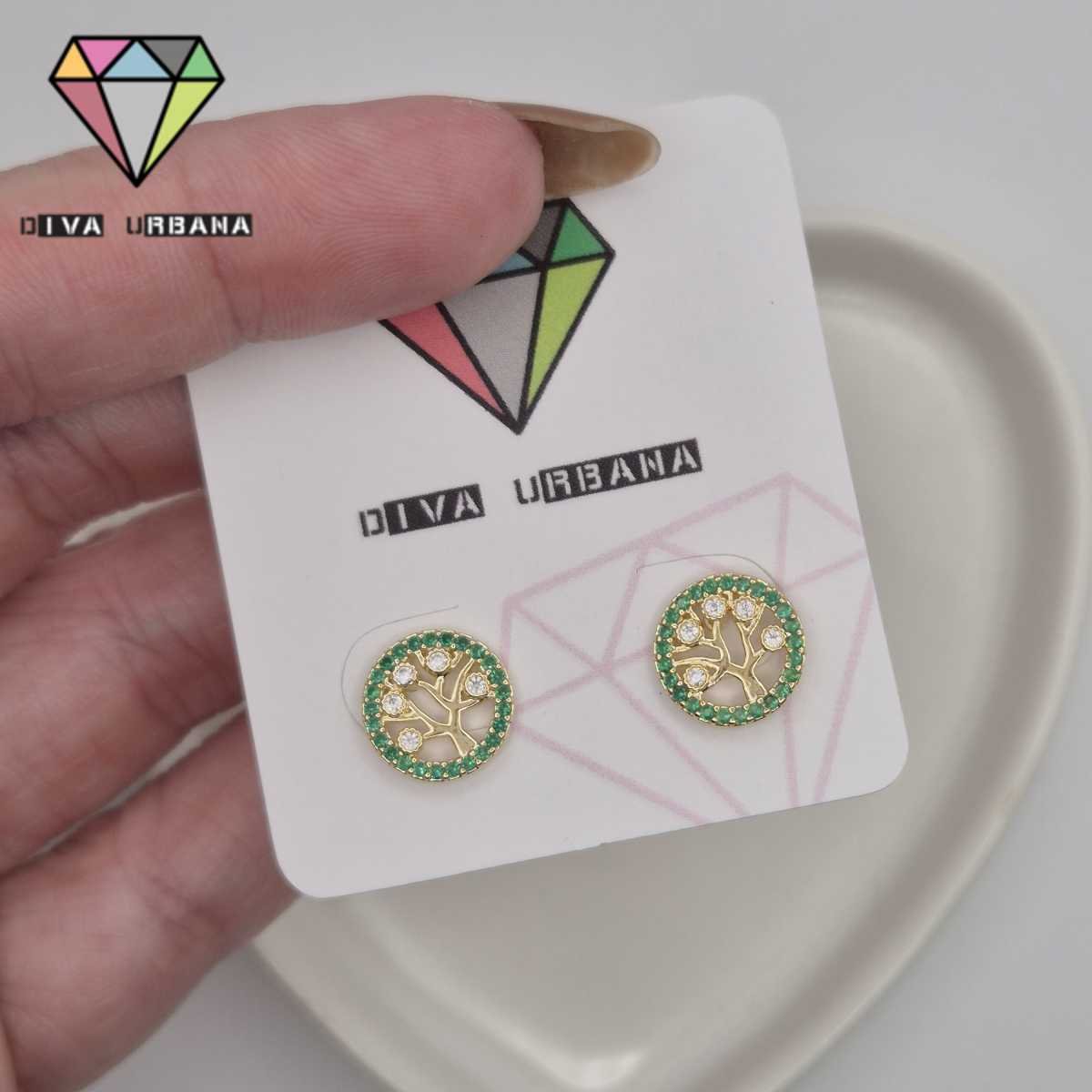B8441 BRINCO PINO ARVORE DA VIDA VAZADA CRAV ZIRC VERDE