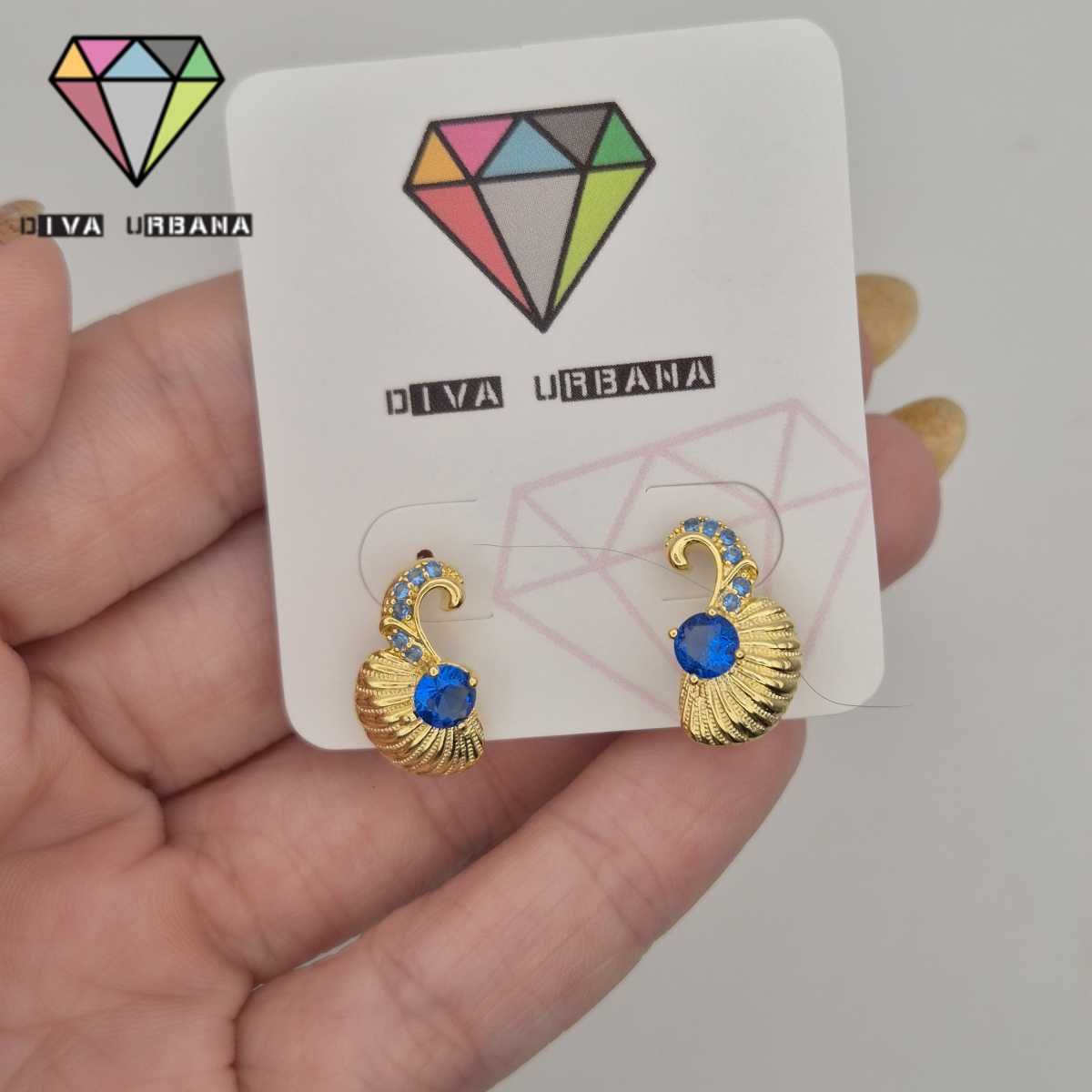 B8603 BRINCO ARGOLA CLICK CONCHA CRAV ZIRC AZUL