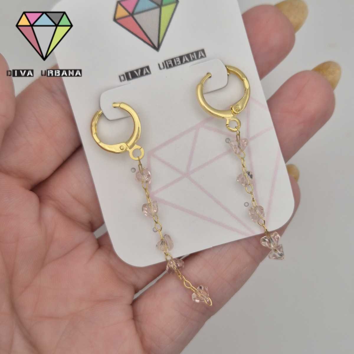 B8645 BRINCO ARGOLA CLICK LONGO PEDRINHAS ROSA