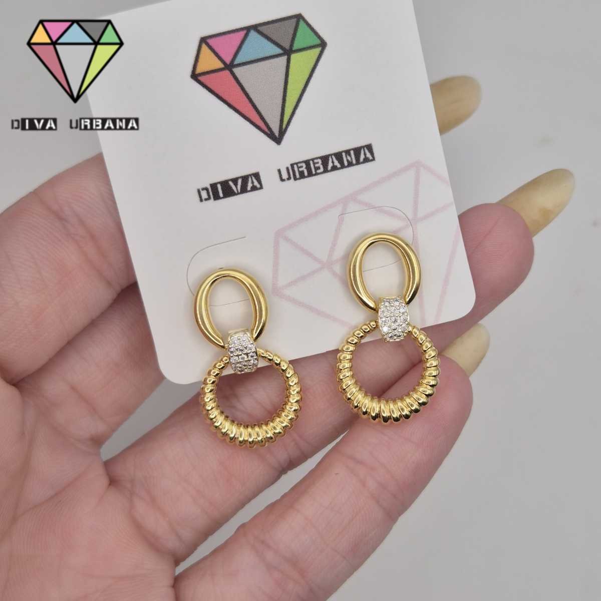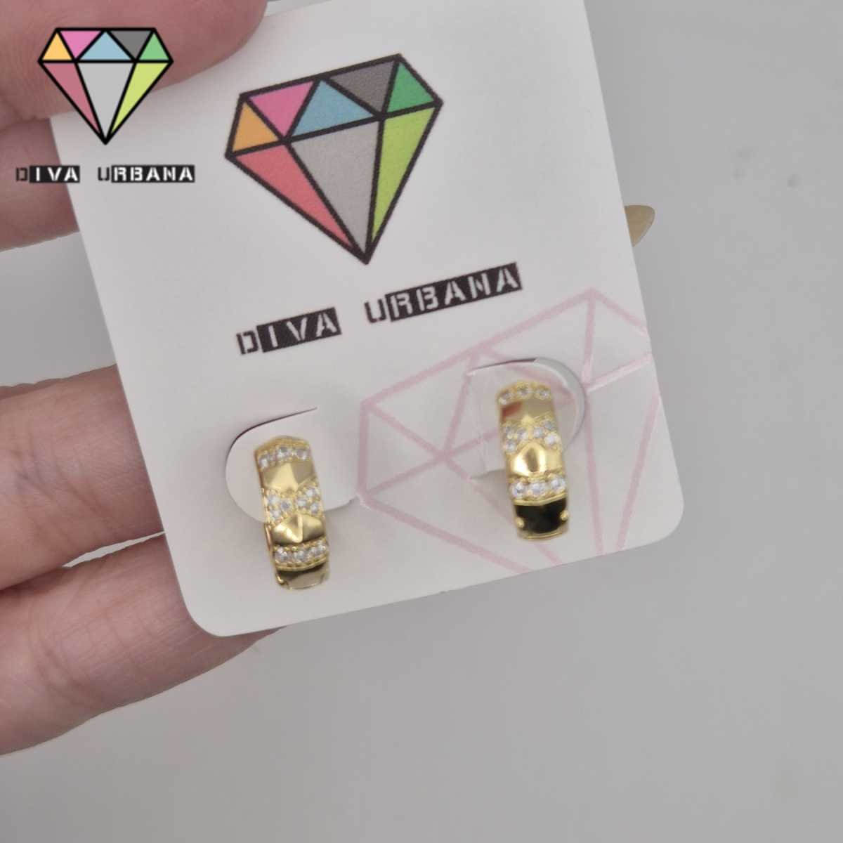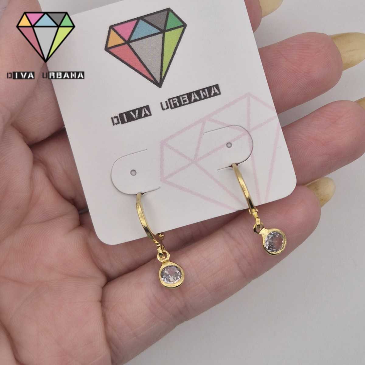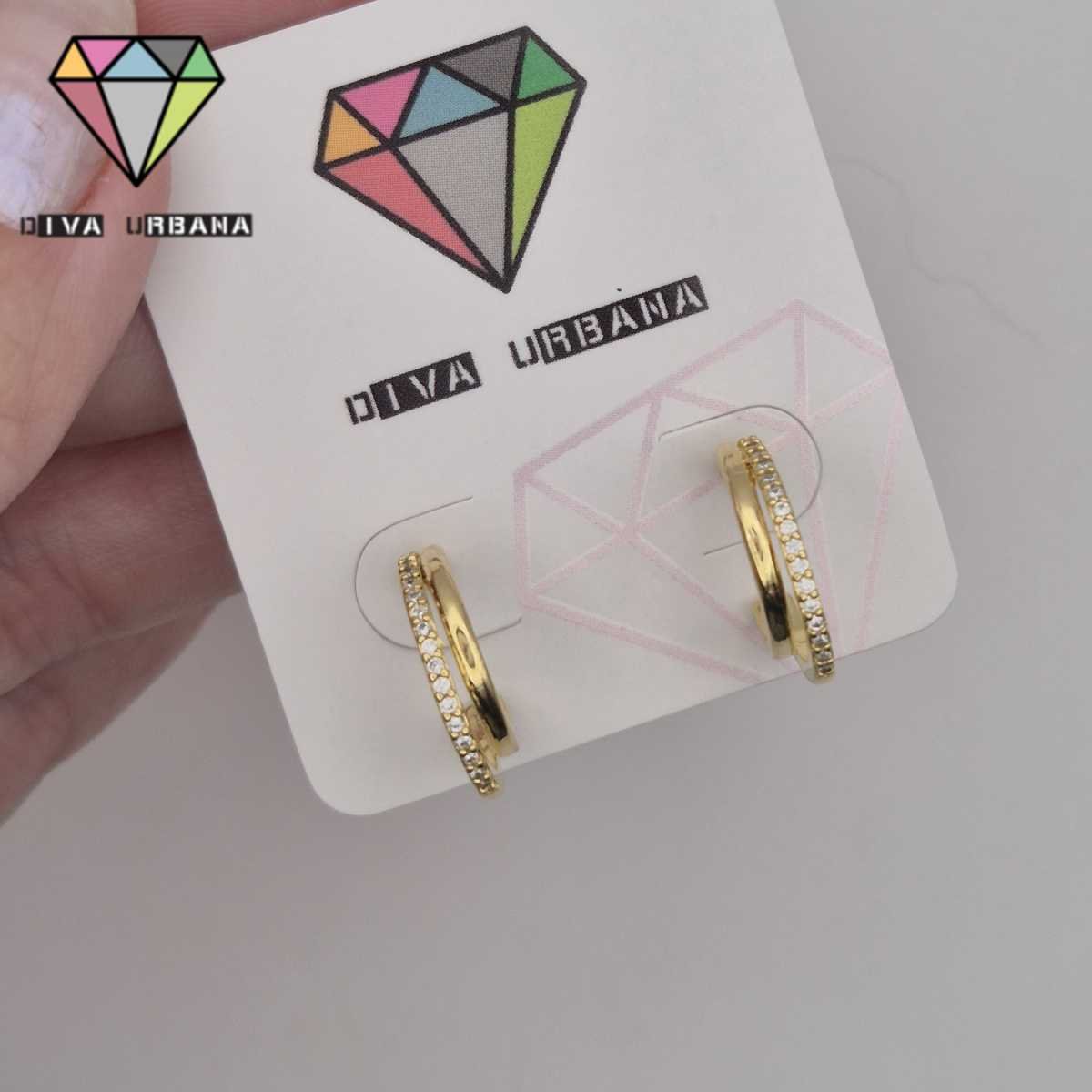 B8728 BRINCO ARGOLA PINO DUPLA DOURADA/CRAV ZIRC CRISTAL