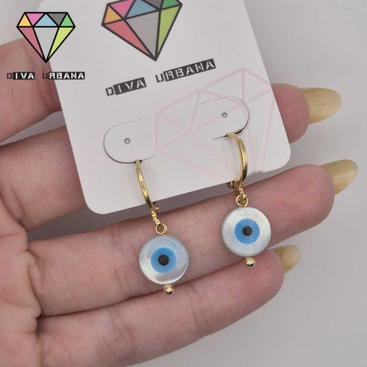 B8716 BRINCO ARGOLA CLICK OLHO GREGO MADREPEROLA