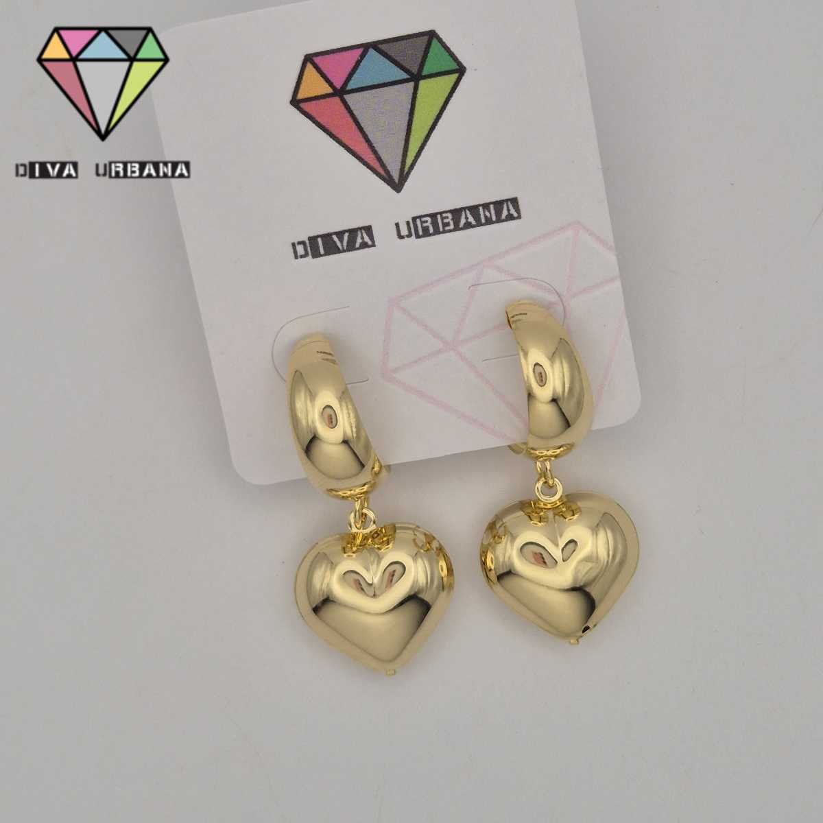 B8753 BRINCO ARGOLA PINO DOURADA PING CORAÇÃO DOURADO