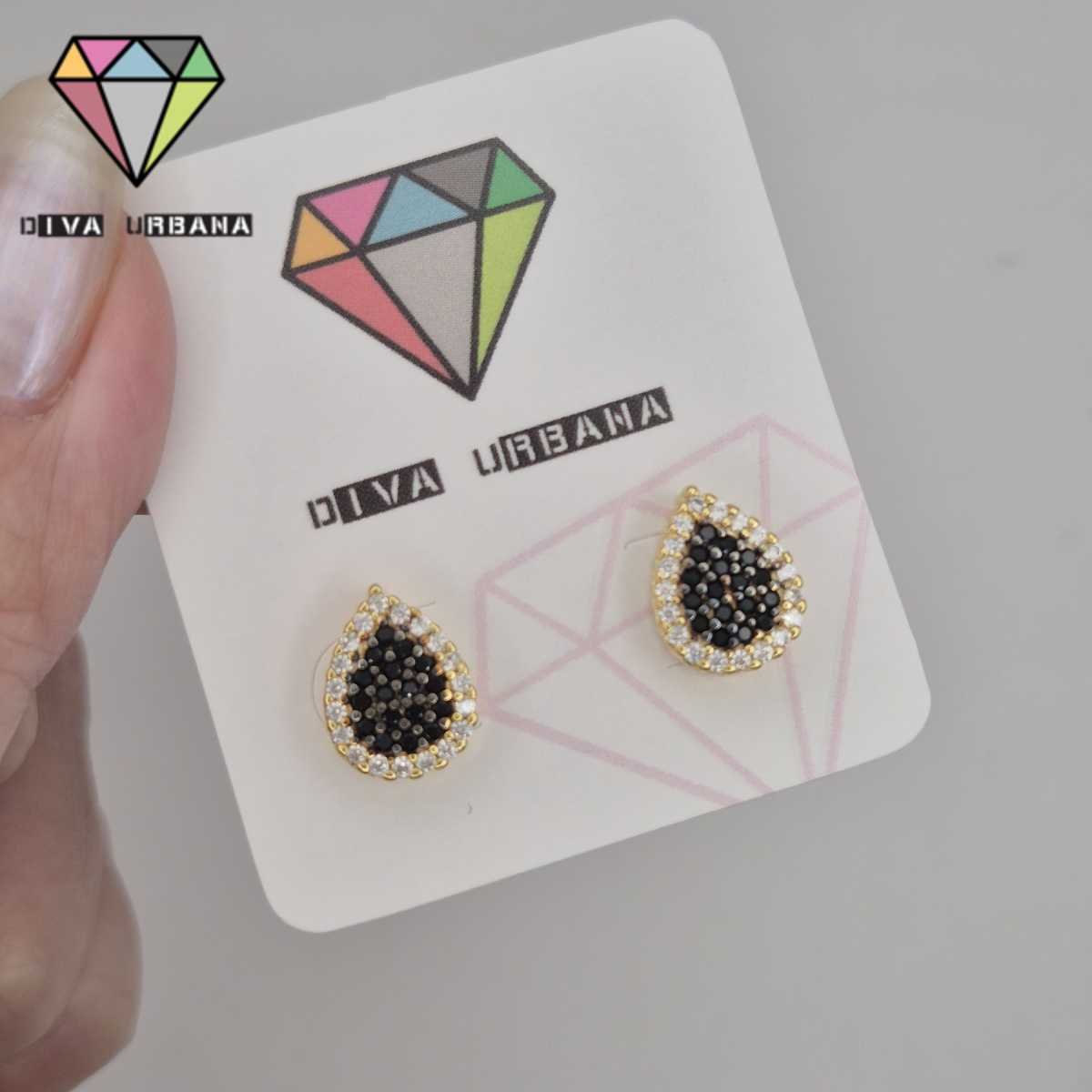 B8891 BRINCOPINO GOTA CRAV ZIRC NEGRA E CRISTAL