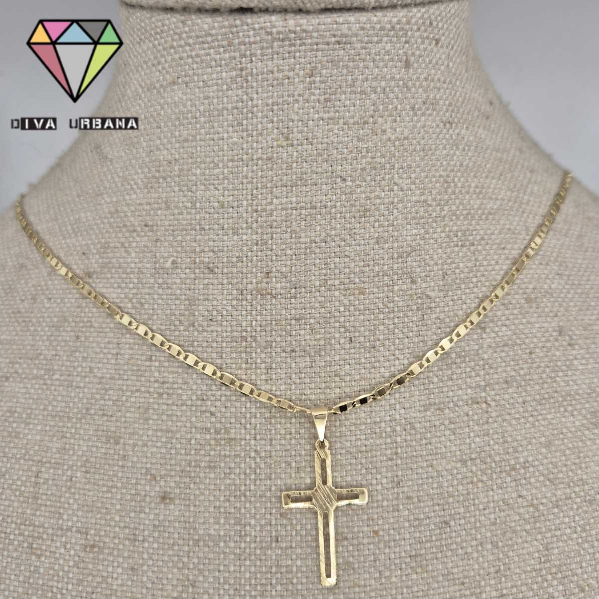 C4493 COLAR CORRENTE MASCULINA CRUZ DOURADA/TIMBRADA