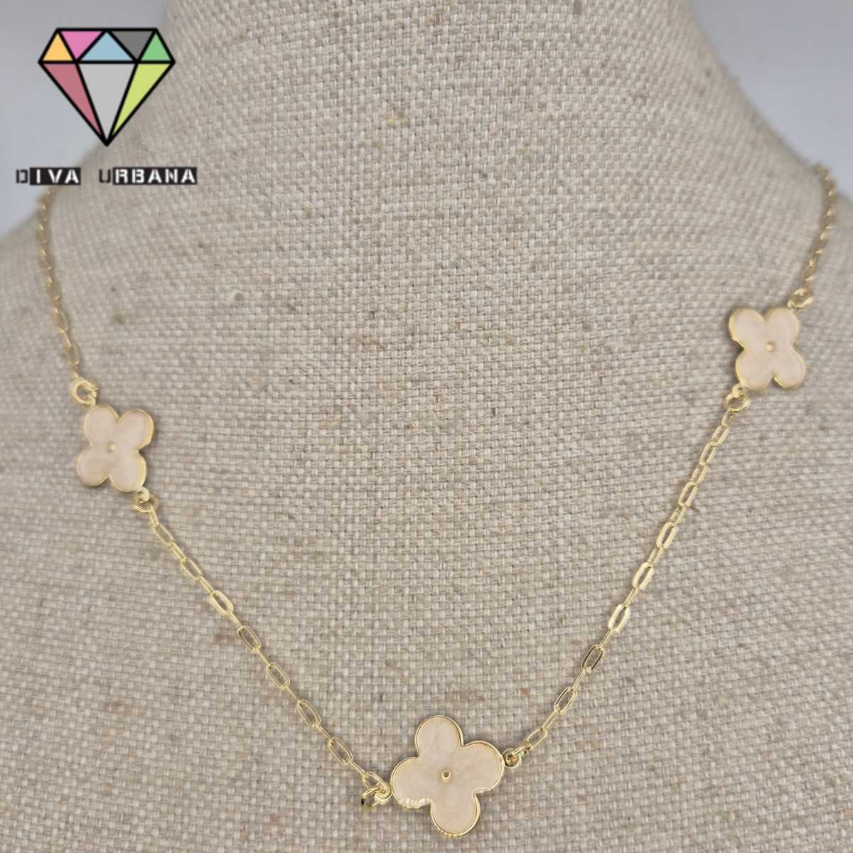C4357 COLAR ELO CARTIER TRES TREVOS ESMALTADO NUDE