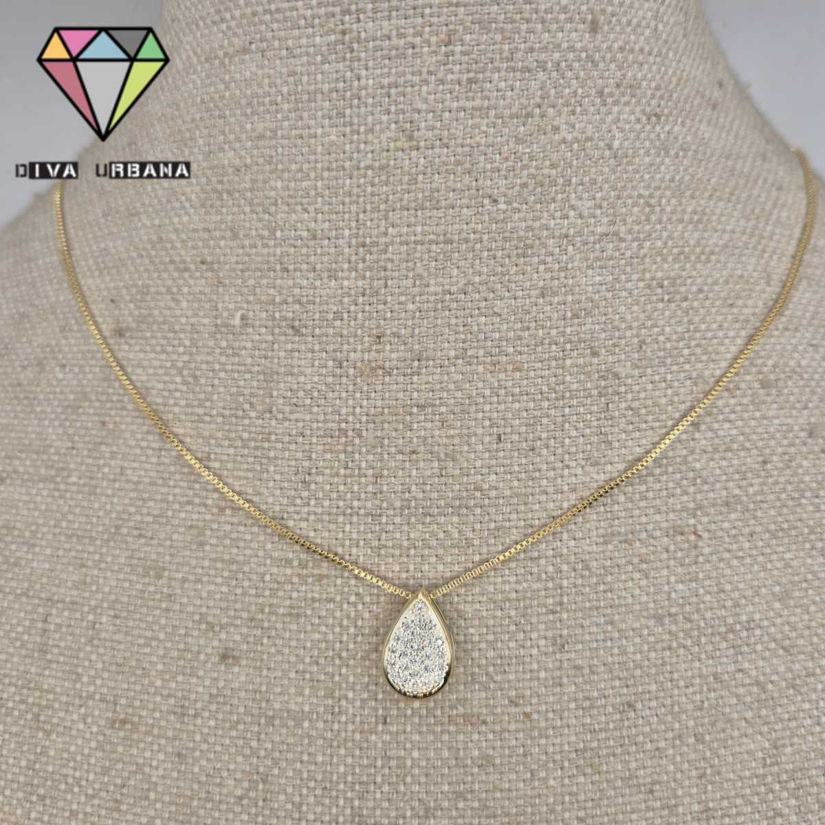 C4389 COLAR ELO VENEZIANO GOTA CRAV ZIRC CRISTAL