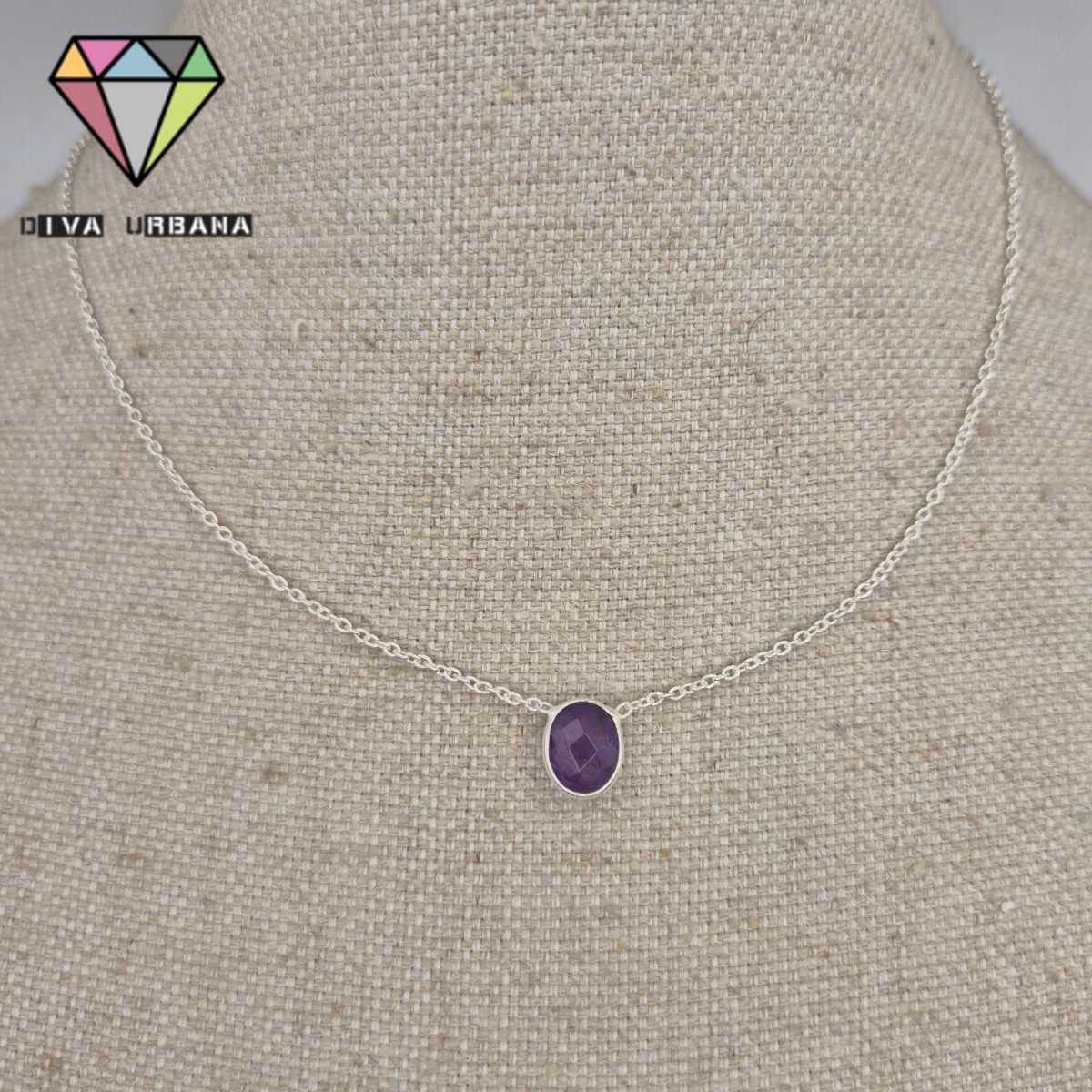 C4513 COLAR PONTO PRATA 925 LUZ PEDRA NATURAL AMETISTA
