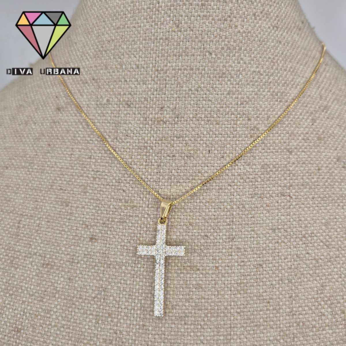 C4470 COLAR ELO VENEZIANO CRUZ CRAV ZIRC CRISTAL
