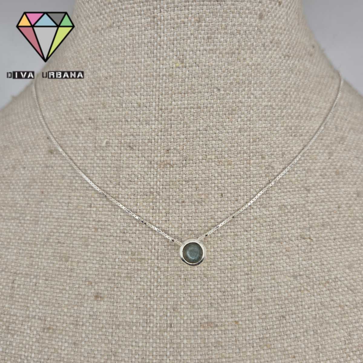 C4508 COLAR PONTO PRATA 925 LUZ PEDRA NATURAL LABRADORITA