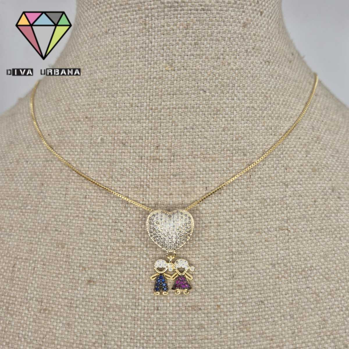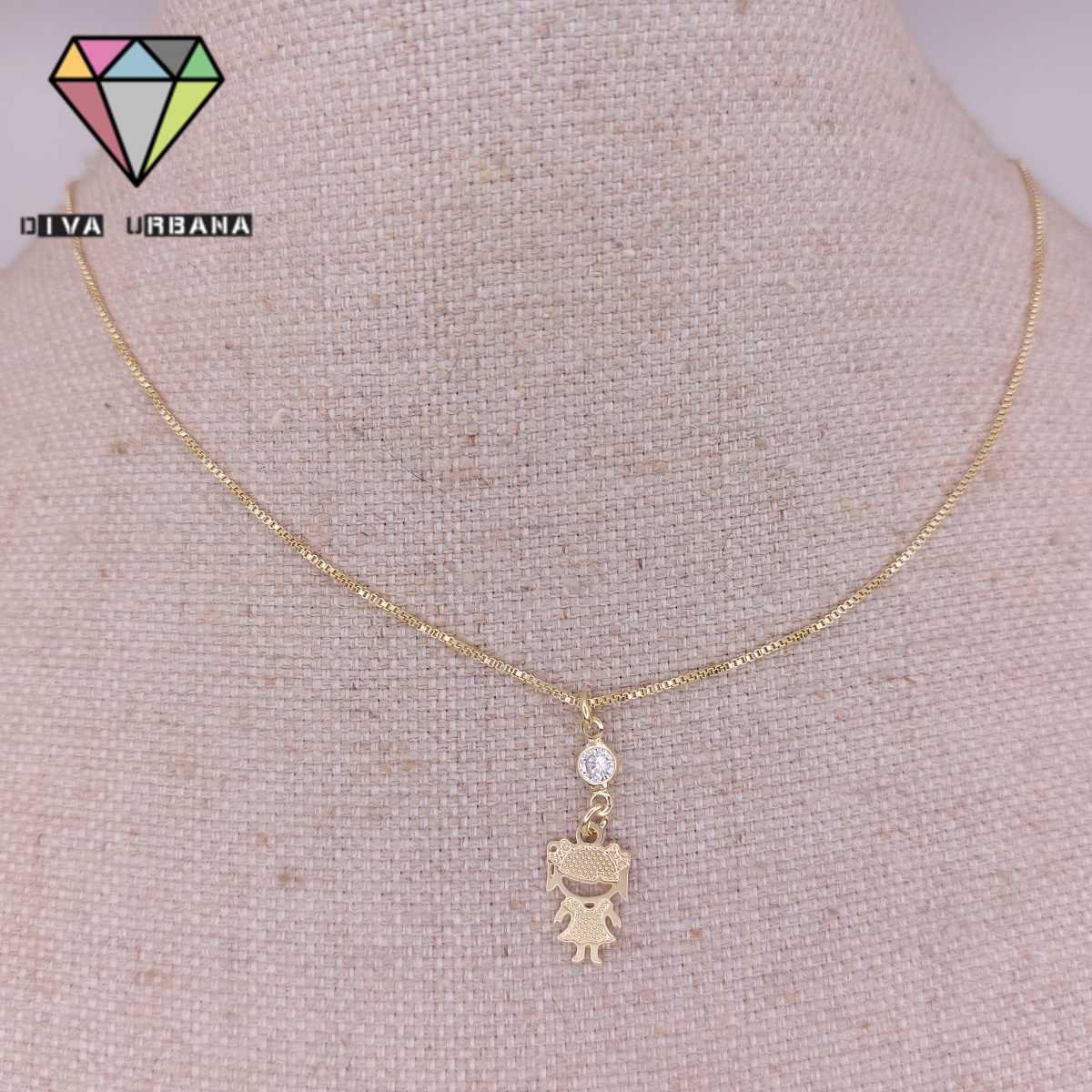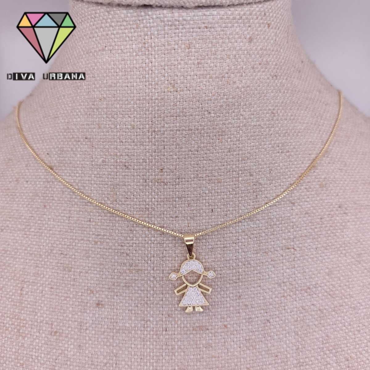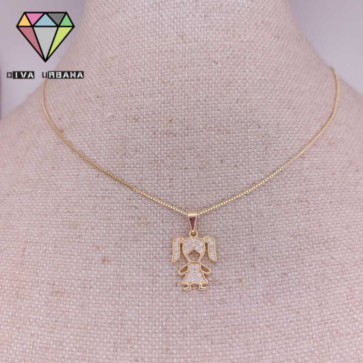 C3940 COLAR ELO VENEZIANO CORACAO DOURADO UMA MENINA CRAV ZIRC C