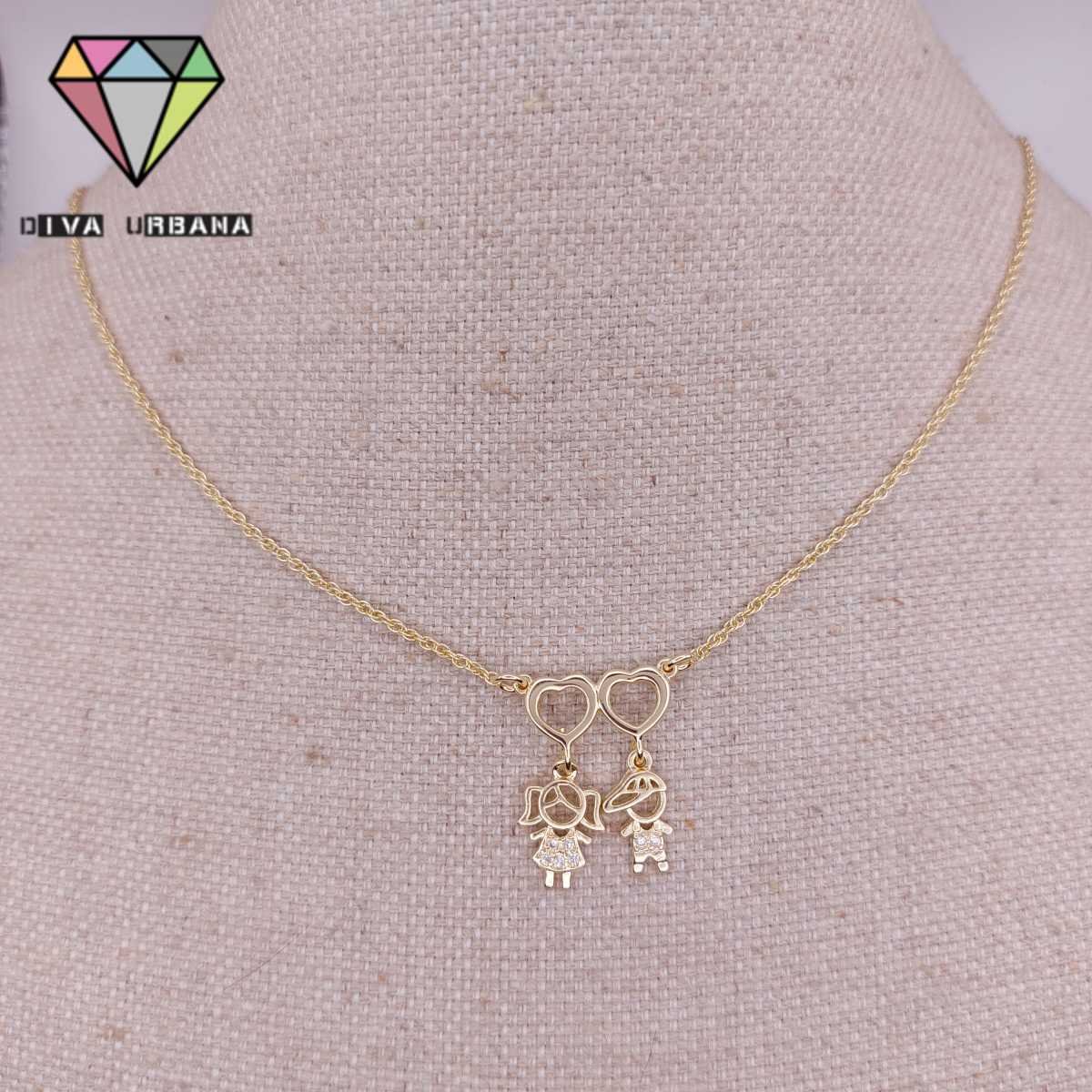 C3854 COLAR ELO DUPLO DOIS CORACOES MENINA E MENINO ZIRC CRISTAL