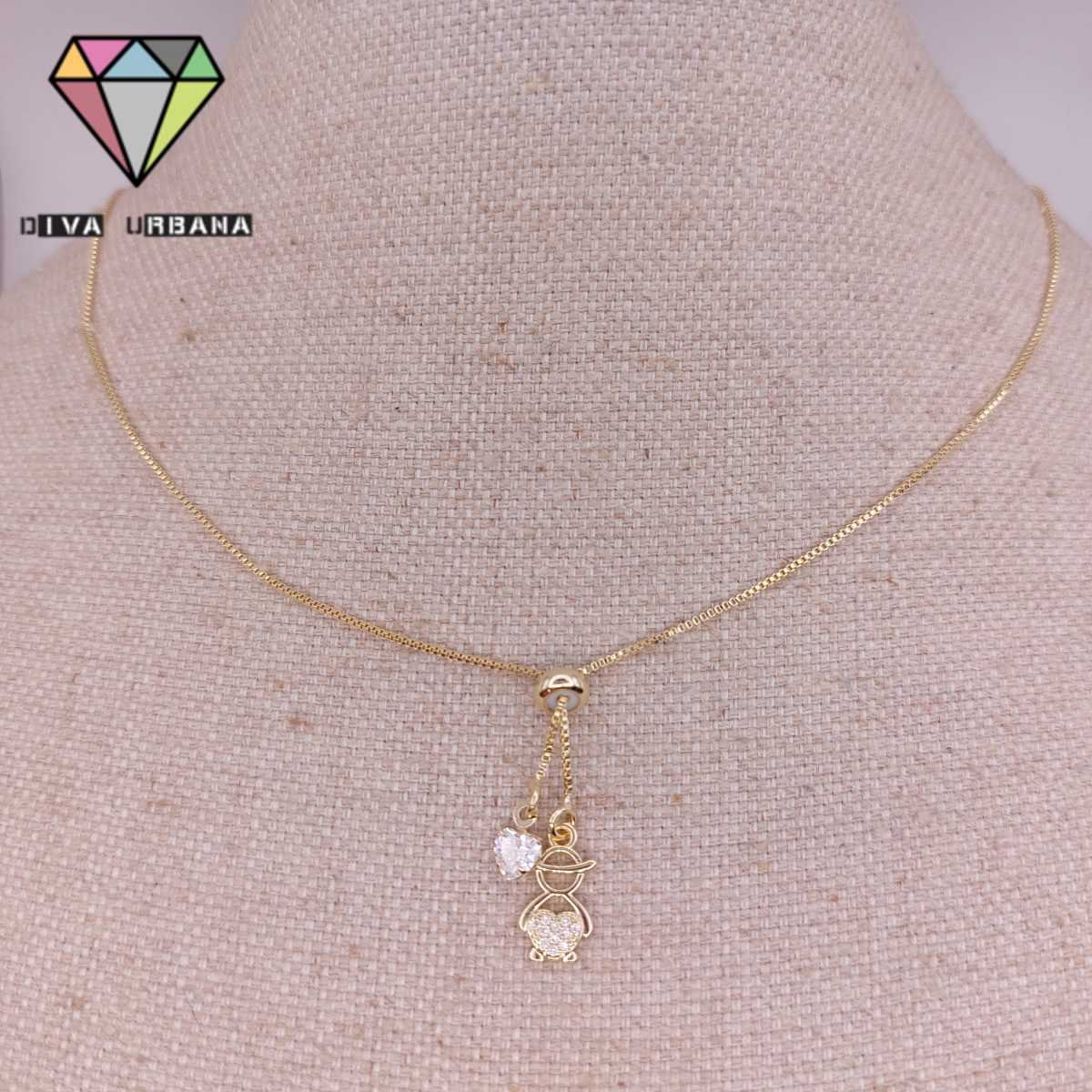 C3982 COLAR ELO VENEZIANO GRAVATINHA MENINO/CORACAO CRAV ZIRC CRIS
