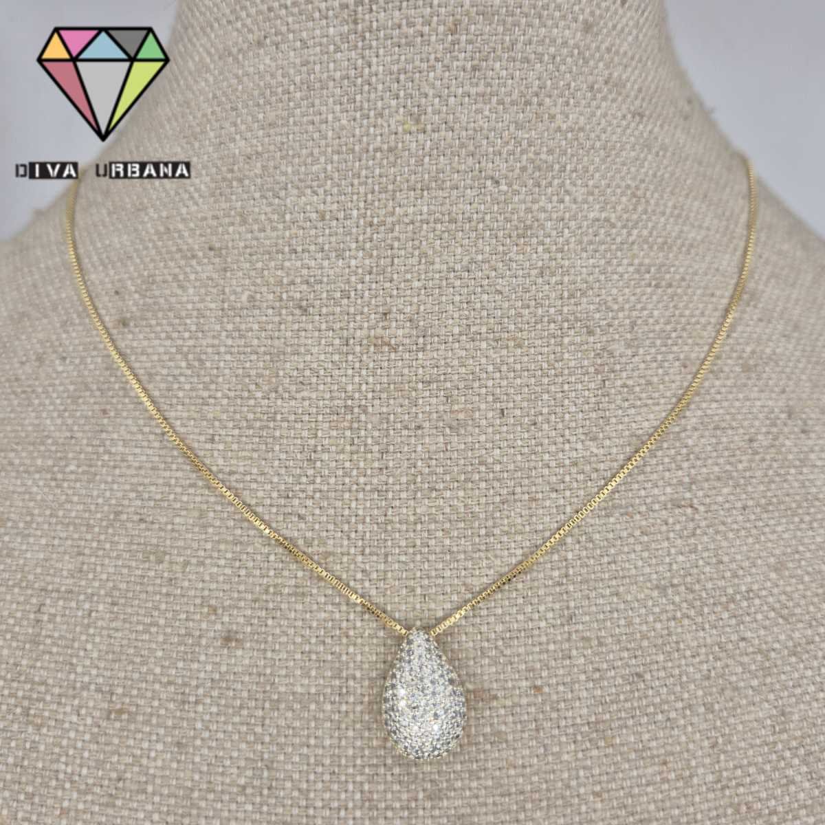 C3862 COLAR VENEZIANO DOURADO GOTA CRAV ZIRC CRISTAL