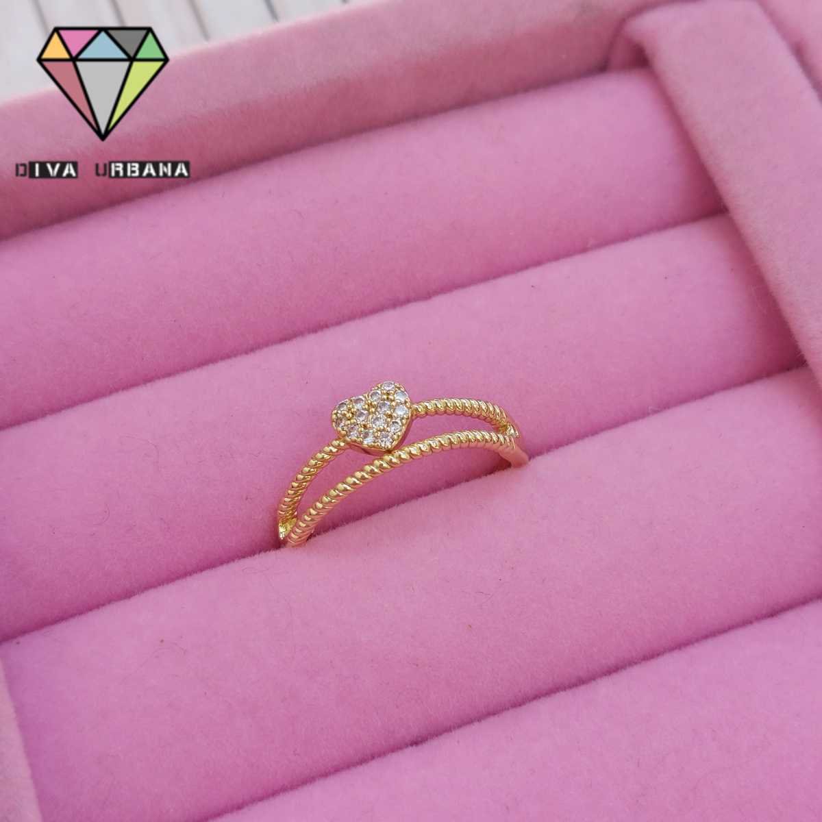 A3038 ANEL DOIS ELOS TORCIDOS CORACAO CRAV ZIRC CRISTAL