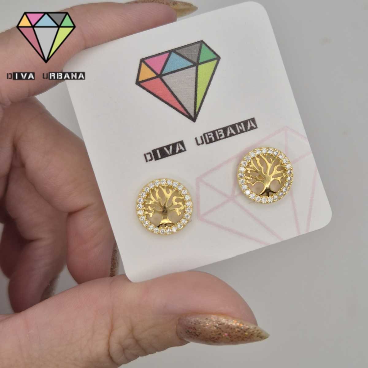 B8674 BRINCO PINO MANDALA ARVORE DA VIDA CRAV ZIRC CRISTAL