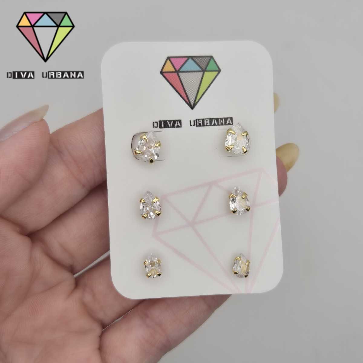 B8766 BRINCO TRIO PINO PONTO DE LUZ GOTINHA CRISTAL