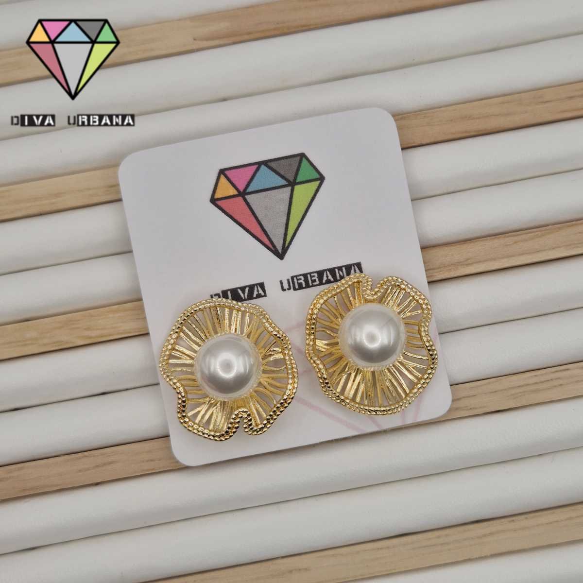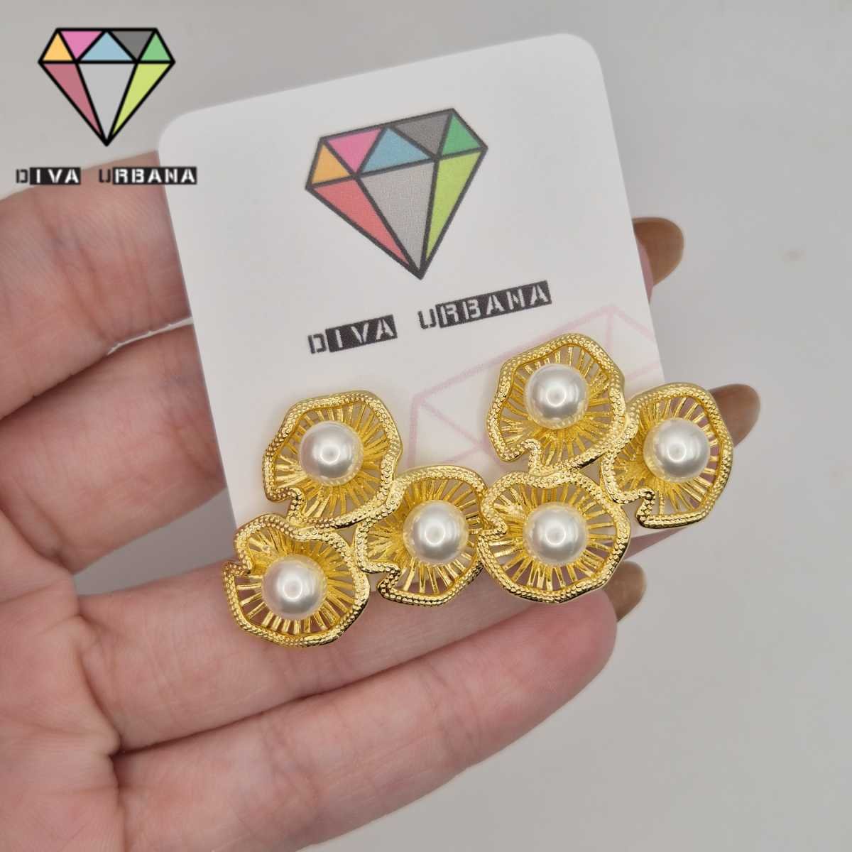 B8430 BRINCO ARGOLA PINO DOURADA PEROLA PASTILHA