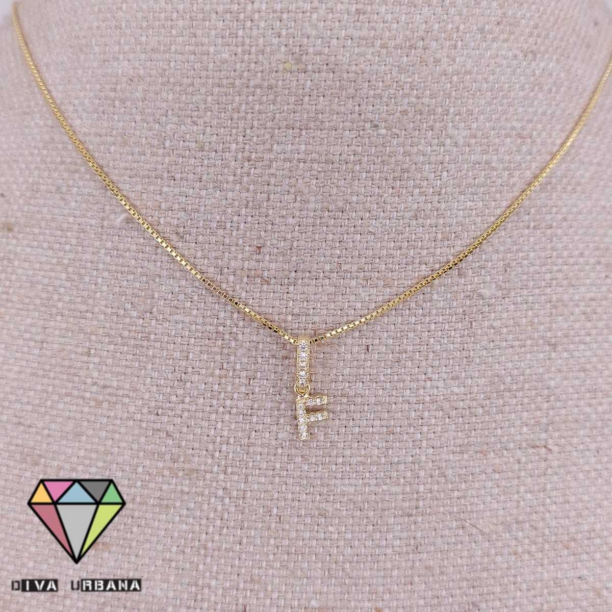 C3029 COLAR VENEZIANO LETRA F CRAV ZIRC CRISTAL