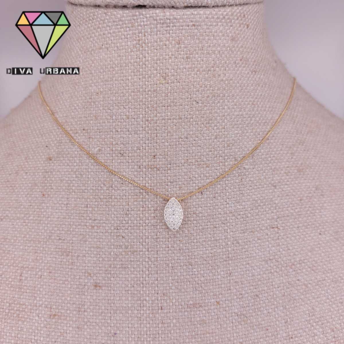 C3167 COLAR ELO VENEZIANO PINGENTE OVAL CRAV ZIRC CRISTAL