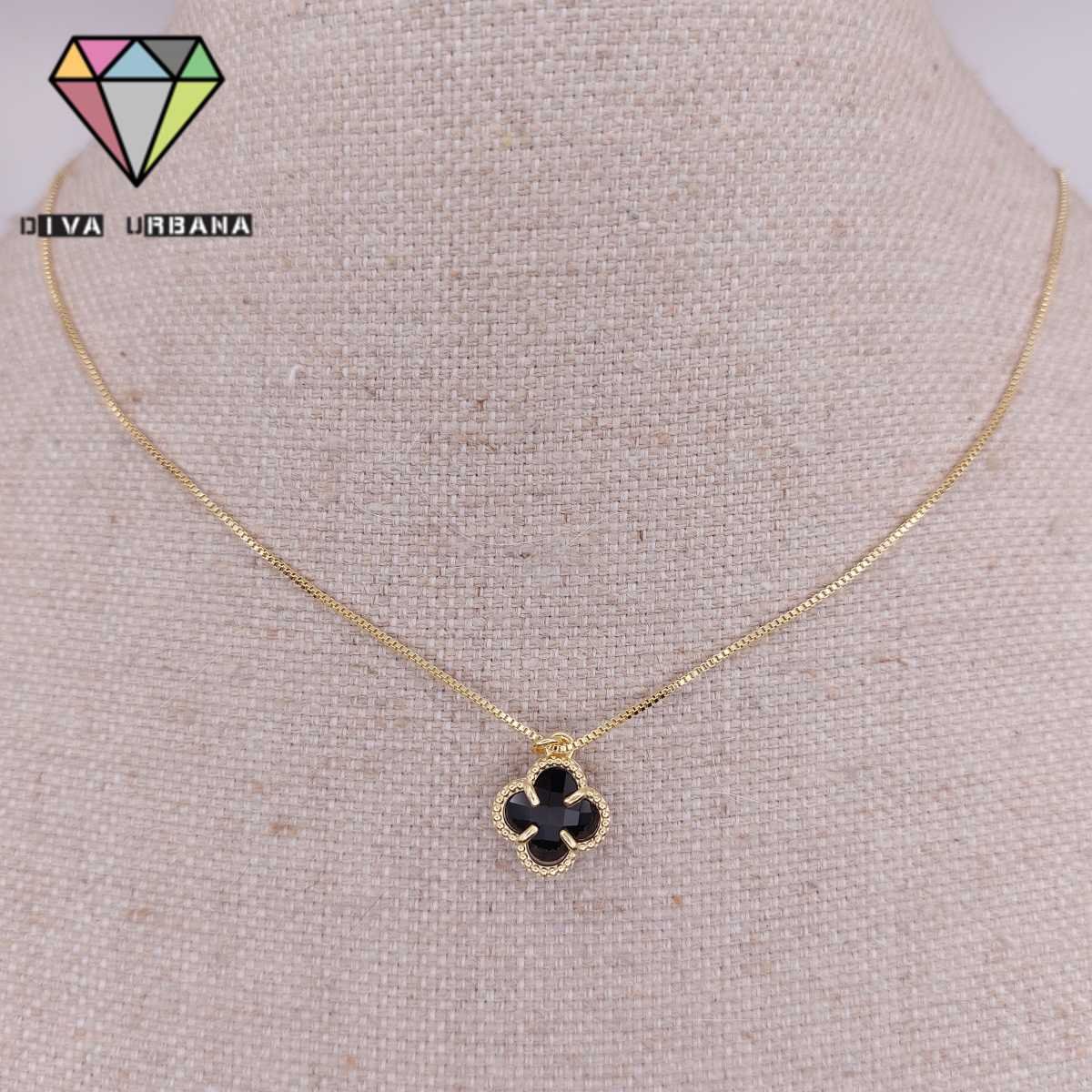 C3478 COLAR ELO VENEZIANO TREVO PRETO INSP ALTA JOALHERIA