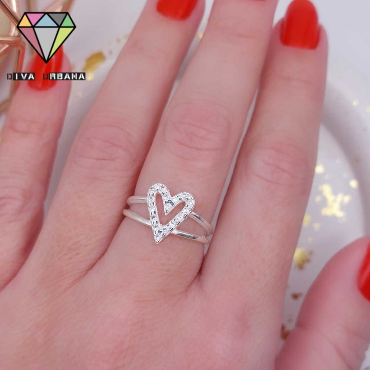 A2358 ANEL PRATA 925 DOIS ELOS CORACAO VAZADO CRAV ZIRC CRISTAL