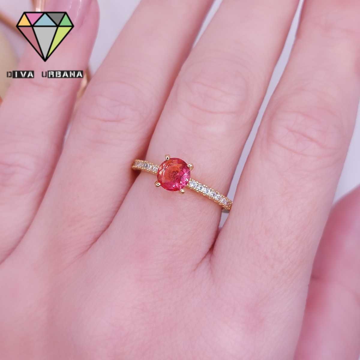 A2396 ANEL SOLITARIO PEDRA CEREJA CRAV ZIRC CRISTAL