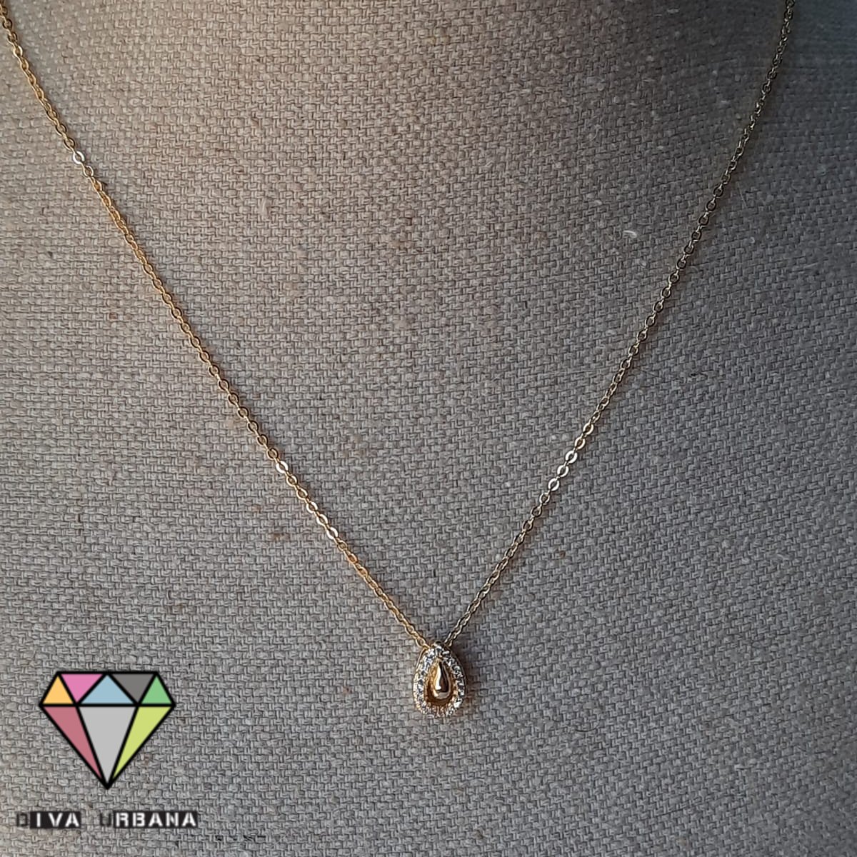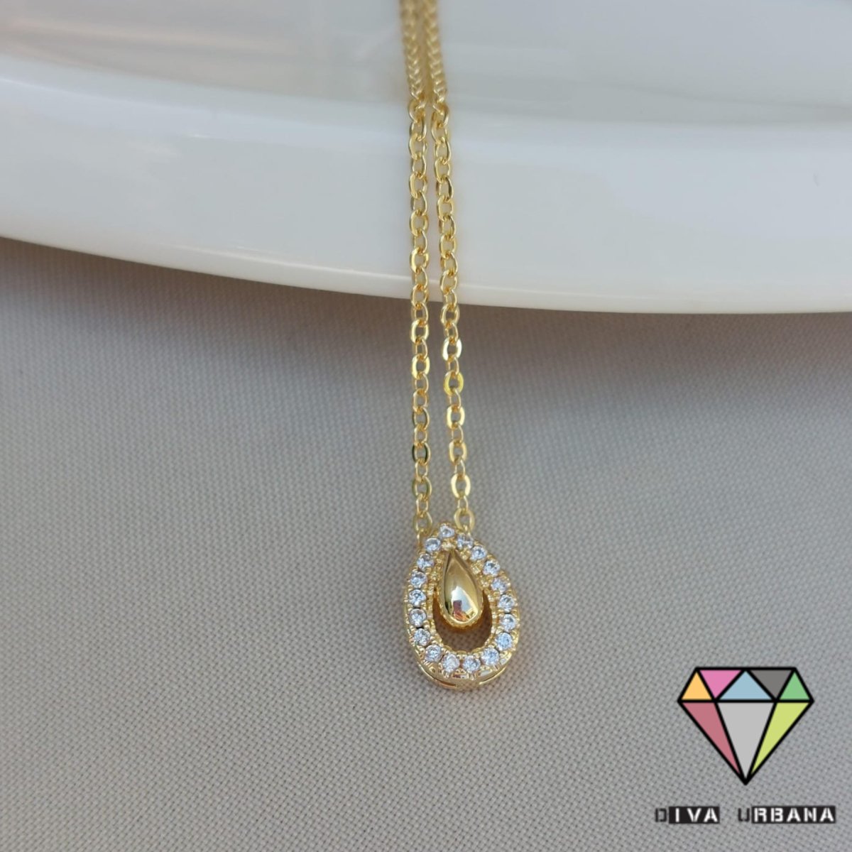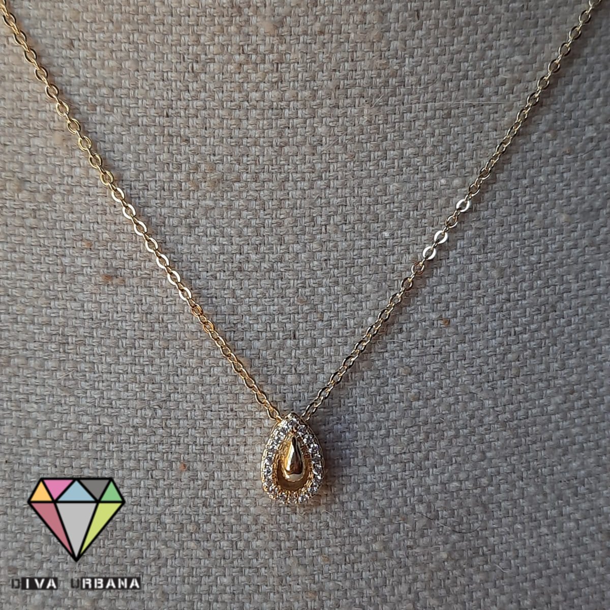 C2494 COLAR ELO PORTUGUES GOTA DOURADA BORDA ZIRC CRISTAL P