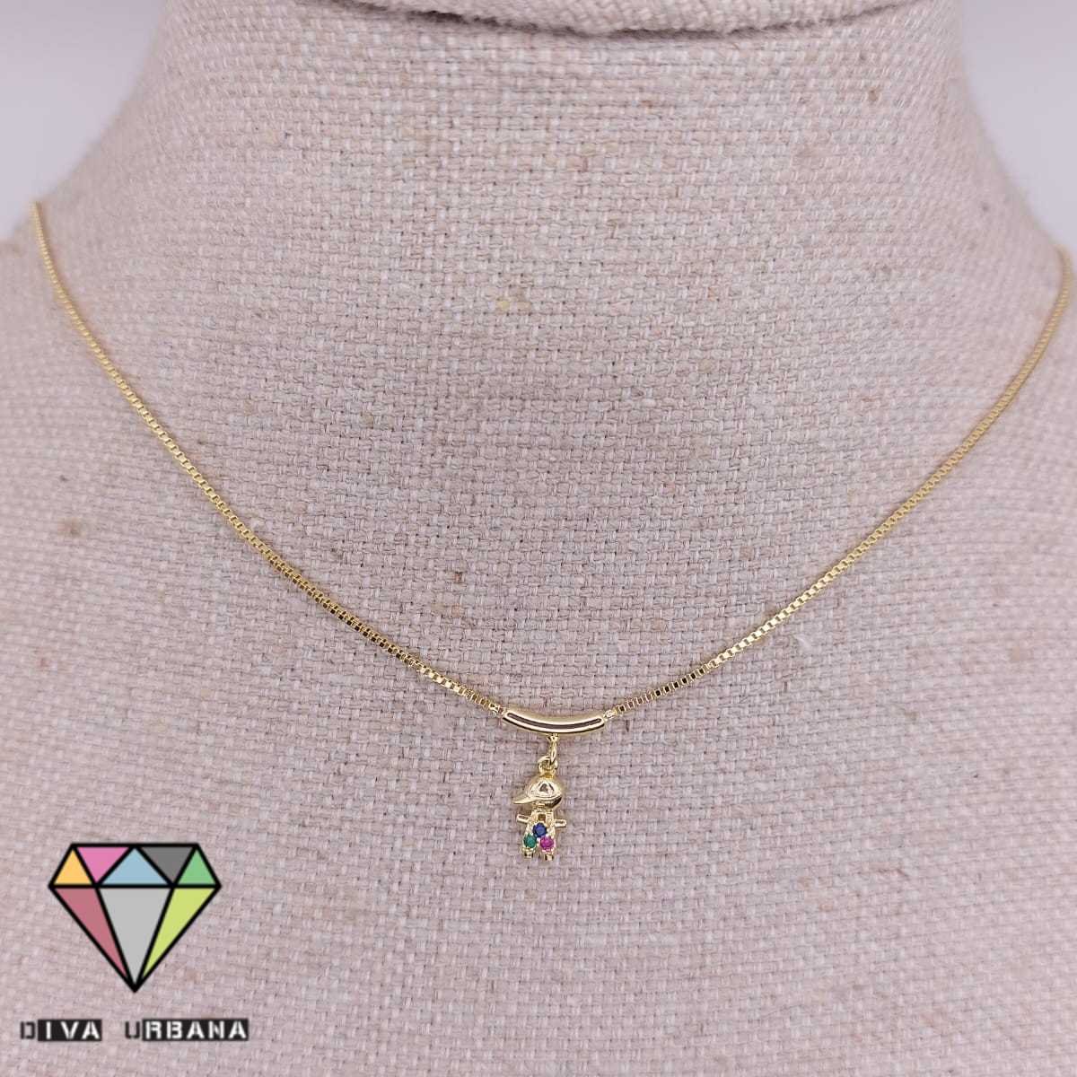 C3039 COLAR VENEZIANO DOURADO PINGENTE CANGA MENINO ZIRC COLORIDAS