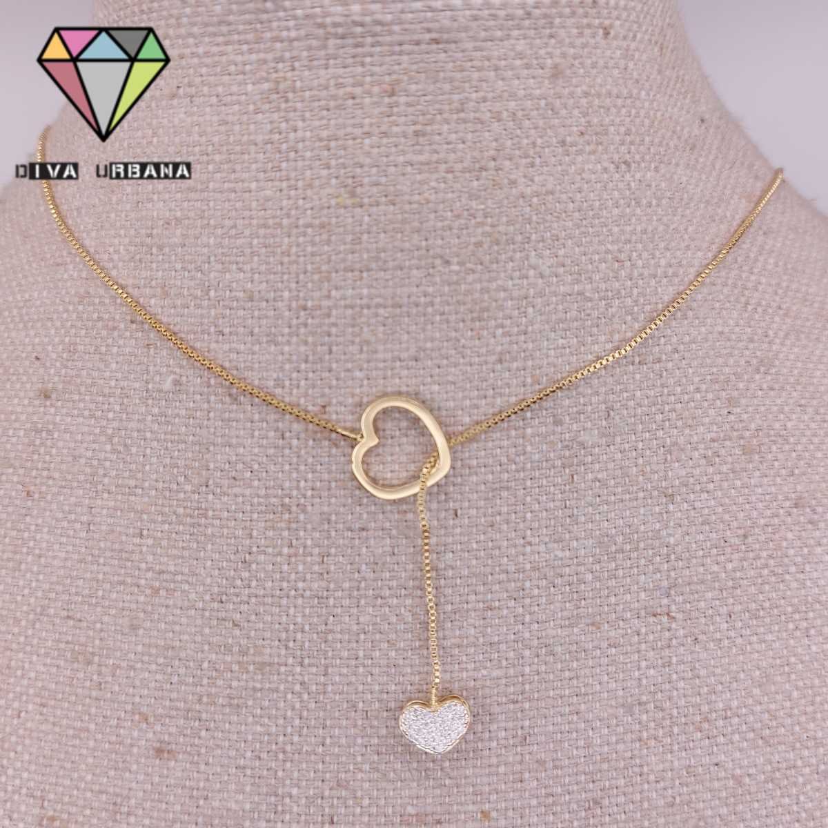C3135 COLAR GRAVATINHA CORAÇAO VAZADO E CORAÇAO CRAV ZIRC CRISTA