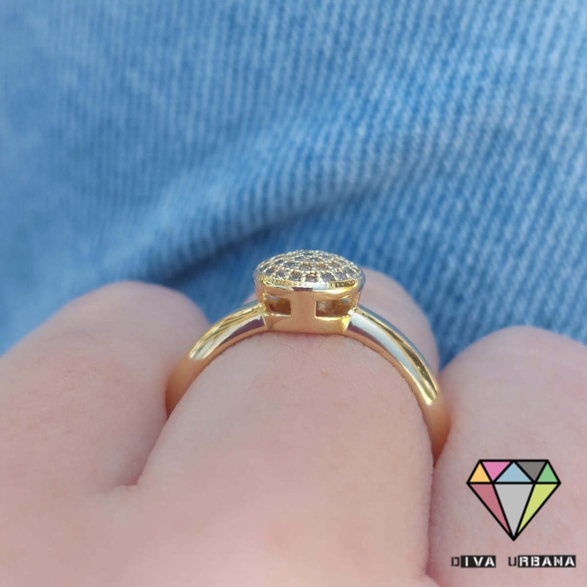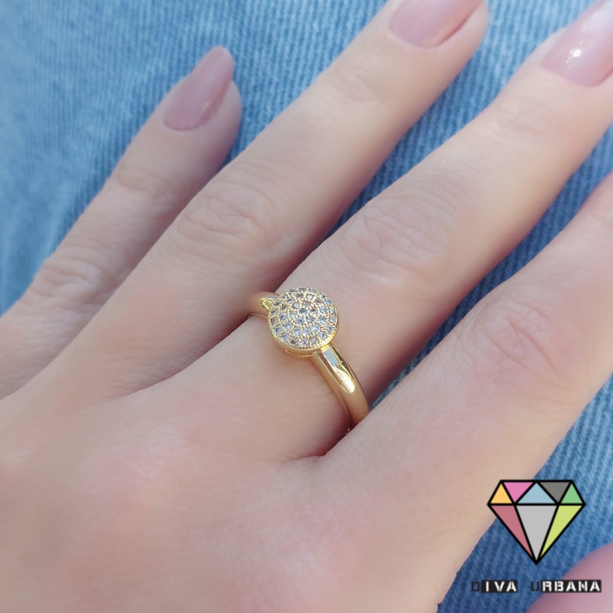 A0542 ANEL 16 FOL DOURADO CRAV ZIRC BRANCA PEDRA BRANCA GOT