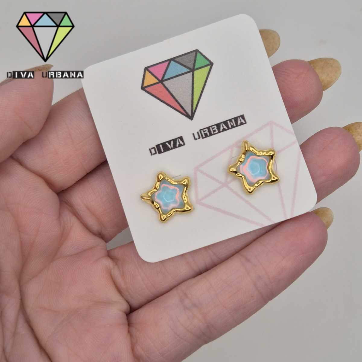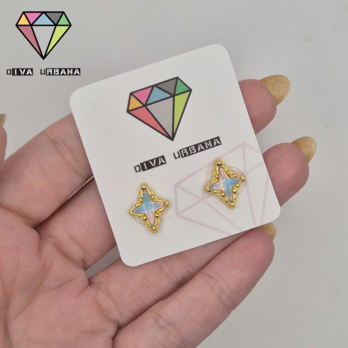 B8897 BRINCO PINO ESTRELA QUATRO PONTAS AZUL LINHA MAR