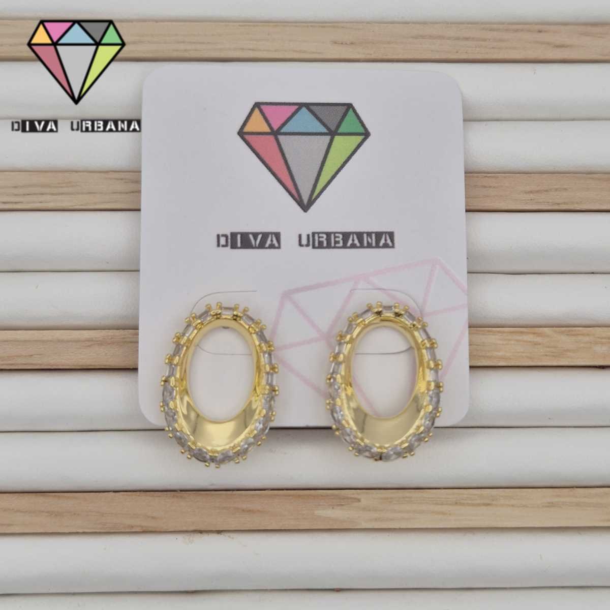 B8823 BRINCO PINO BASECRV ZIRC CRISTAL OVAL DOURADO