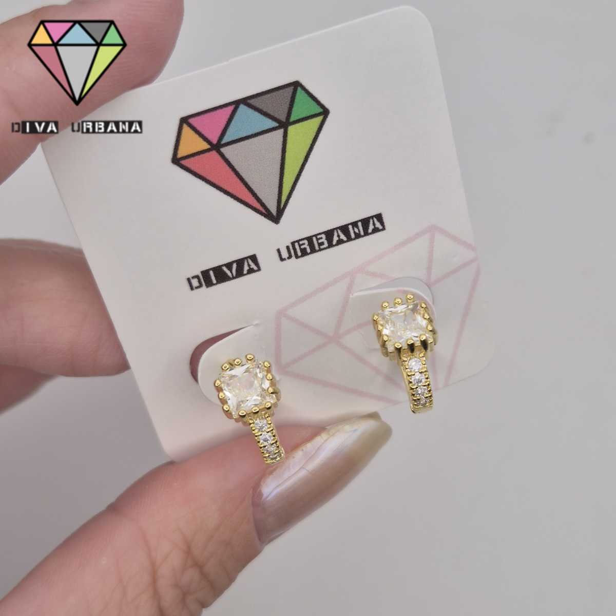 B8844 BRINCO ARGOLA CLICK QUADRADO CRAV ZIRC CRISTAL