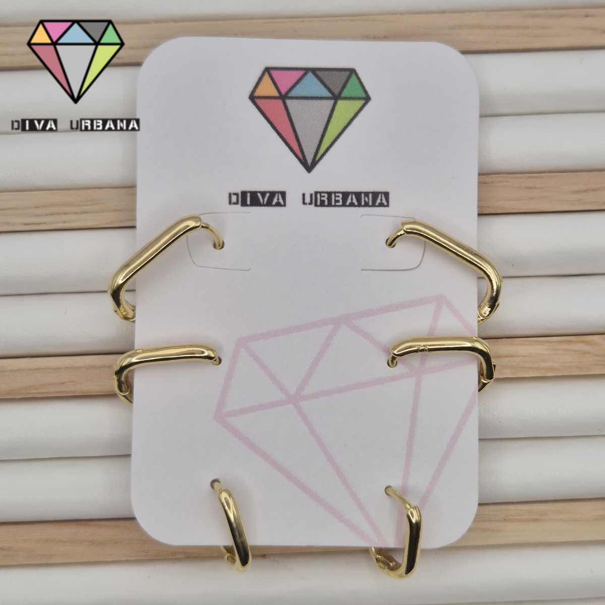 B8850 BRINCO TRIO ARGOLA QUADRADA DOURADA