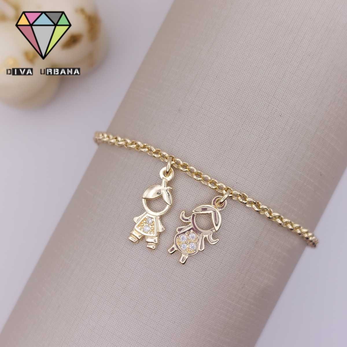 P1969 PULSEIRA ELO PORTUGUES DUAS MENINAS CRAV ZIRC CRISTAL