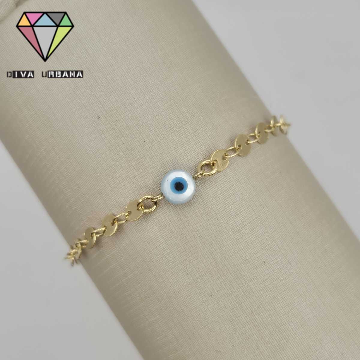P2464 PULSEIRA MEDALHINHAS OLHO GREGO MADREPEROLA