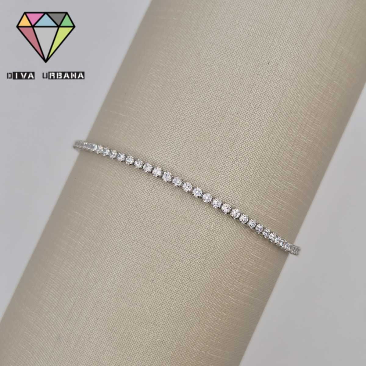 P2493 PULSEIRA RIVEIRA FINA ZIR CRISTAL BANHO RODIO