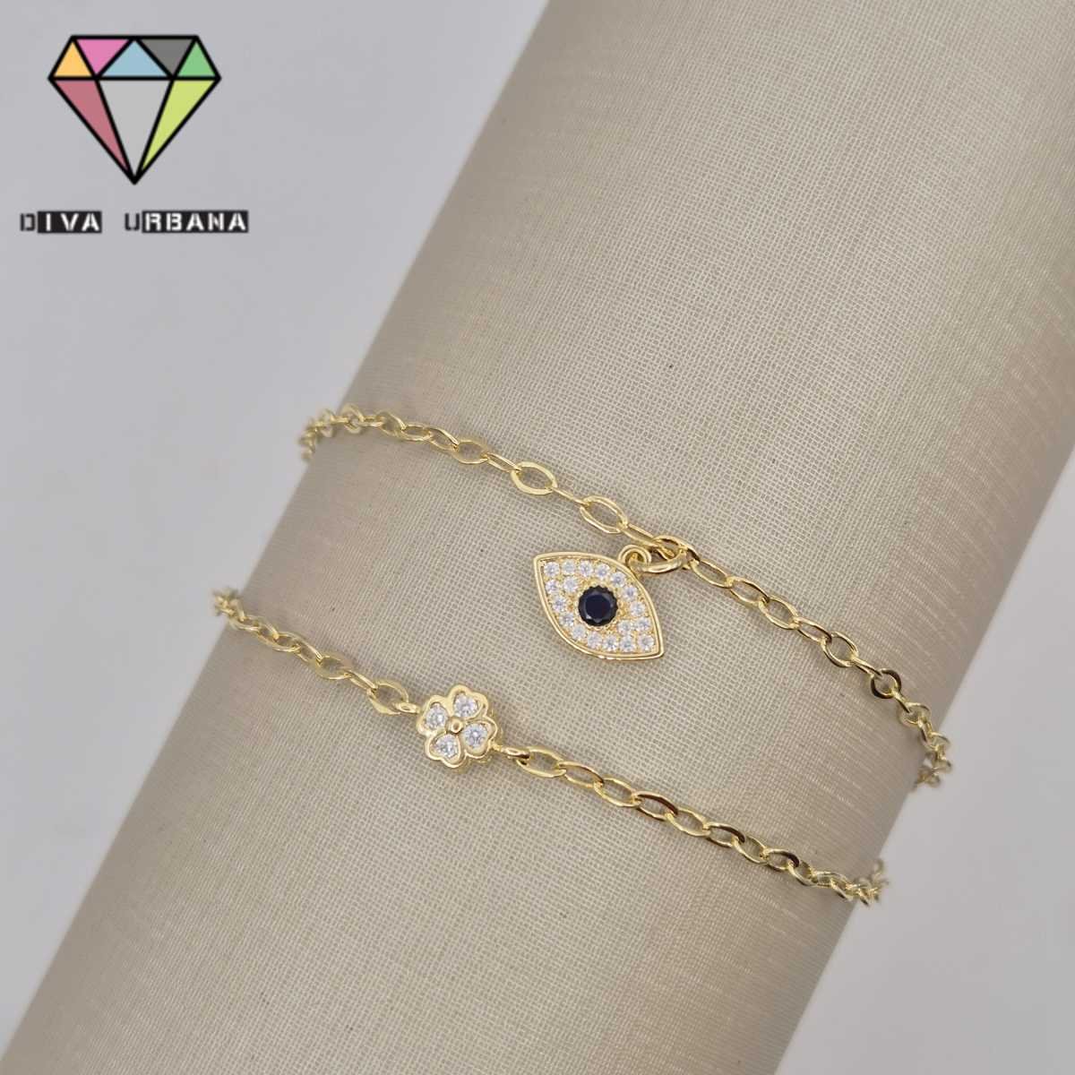 P2545 PULSEIRA ELO DUPLO OLHO GREGO TREVO ZIRC CRISTAL