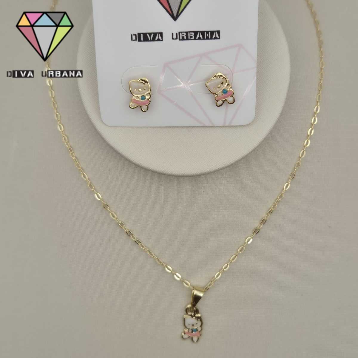 CO0081 CONJUNTO INFANTIL BRINCO/COLAR HELLO KITTY