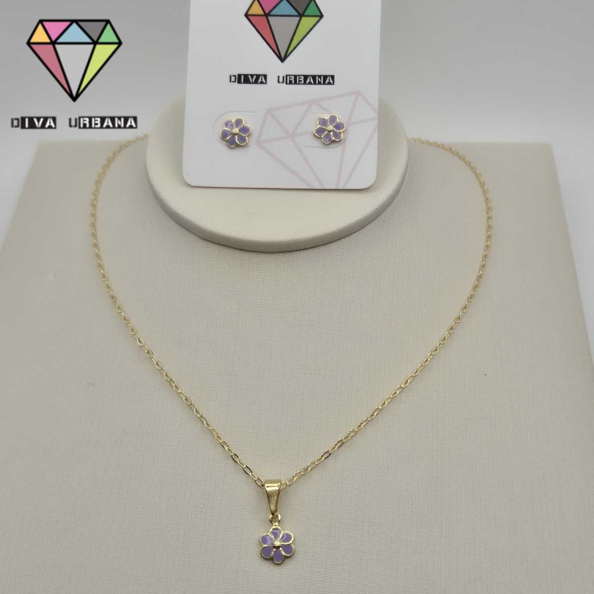 CO0085 CONJUNTO INFANTIL BRINCO/COLAR FLOR ROXA