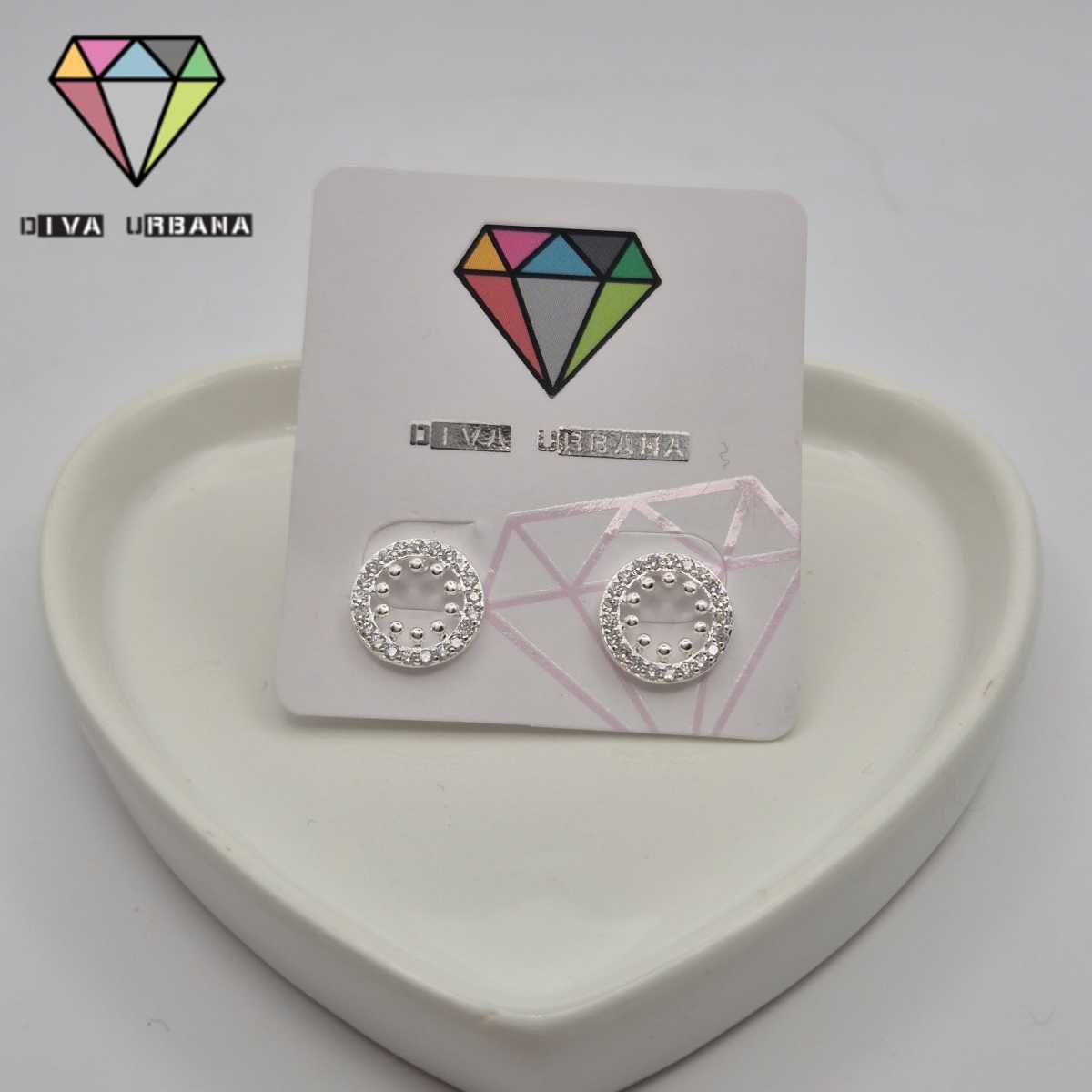 B7903 BRINCO PINO BANHADO A PRATA MANDALA BOLINHAS ZIRC CRISTAL