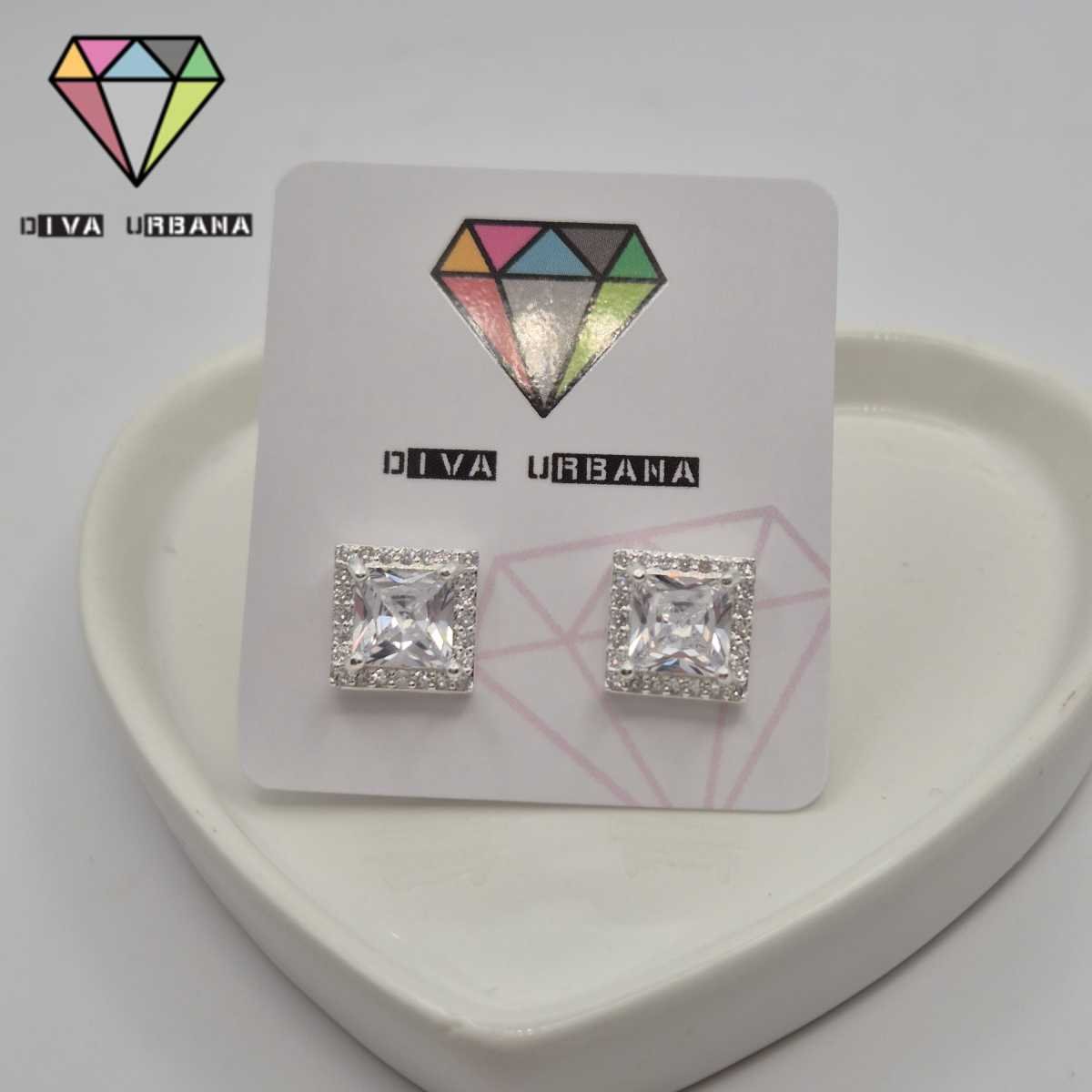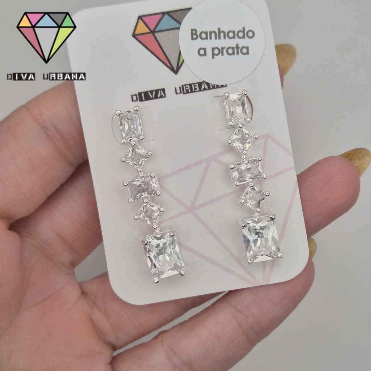 B7951 BRINCO PINO BANHADO A PRATA ZIRC QUADADA CRAV ZIRC CRISTAL