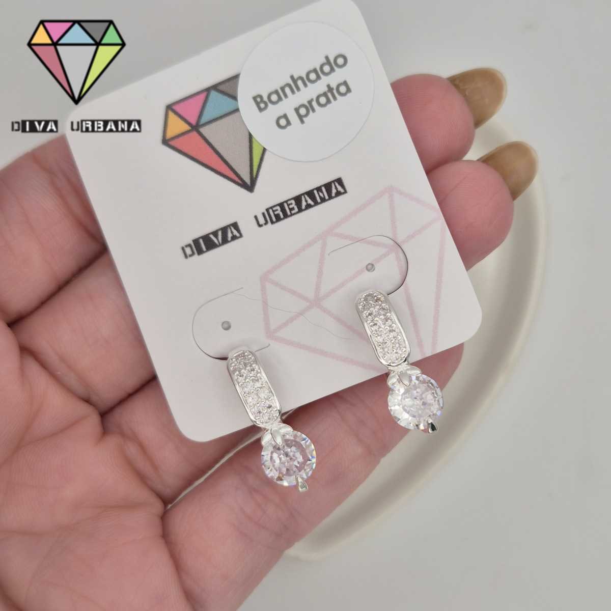 B8619 BRINCO PINO BANHADO A PRATA LONGO ZIRC CRISTAL